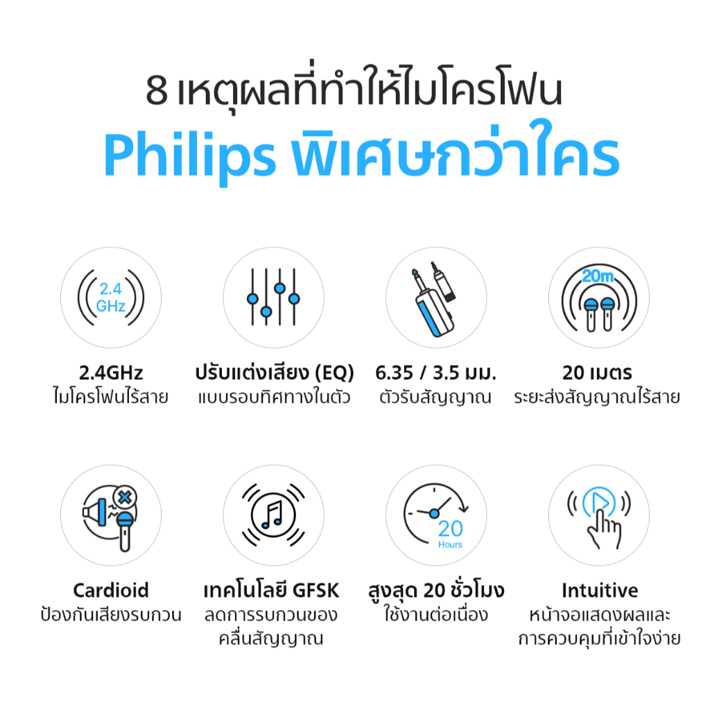 Philips ไมโครโฟนไร้สาย Wireless Microphones คาราโอเกะ เสียงชัด ปรับเสียงร้องได้ รุ่น DLM3401