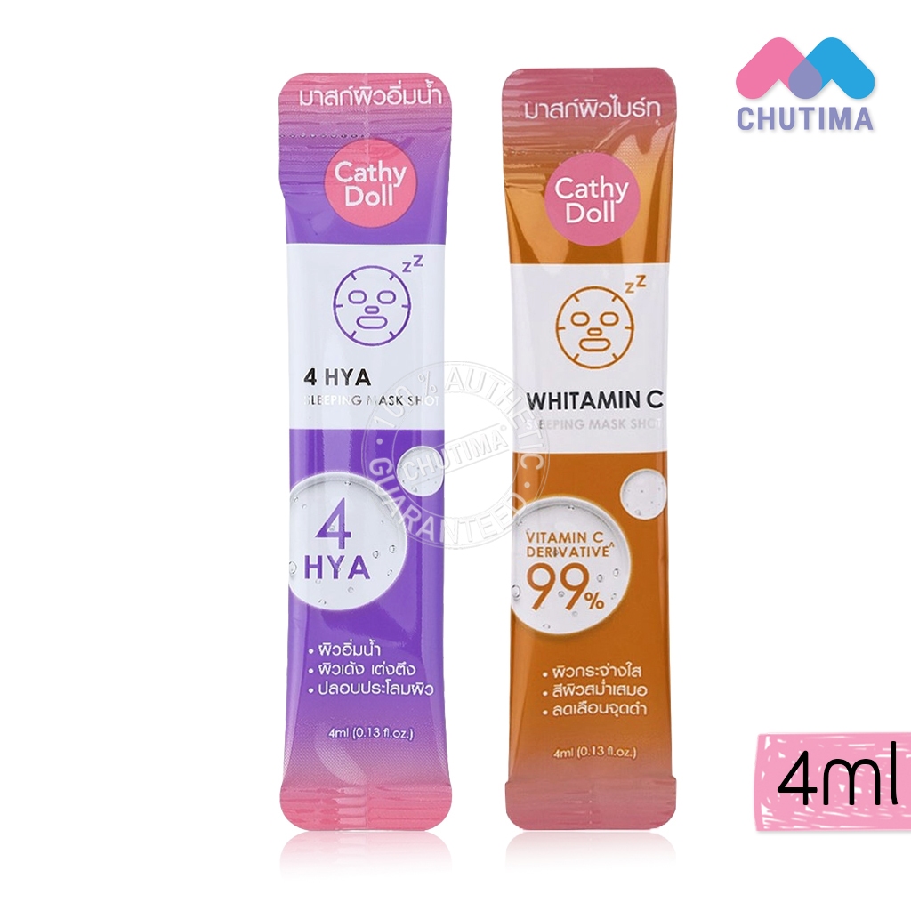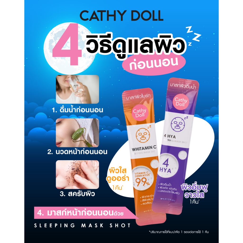 (ขายส่ง ฿9) เคที่ดอลล์ สลีปปิ้งมาส์กช็อต บำรุงผิว Cathy Doll Whitamin C / 4 Hya Sleeping Mask Shot 4ml.