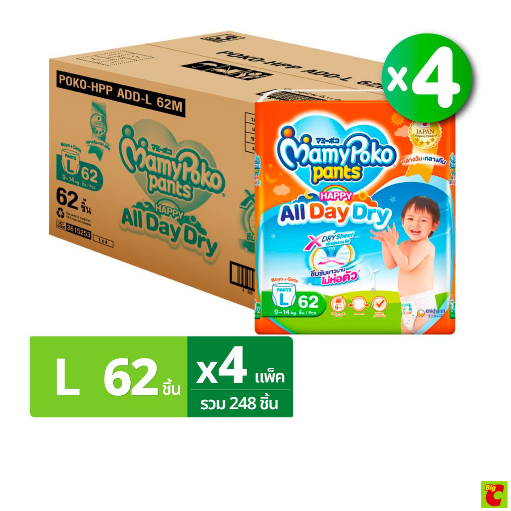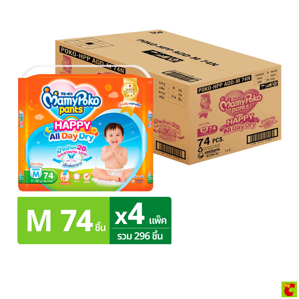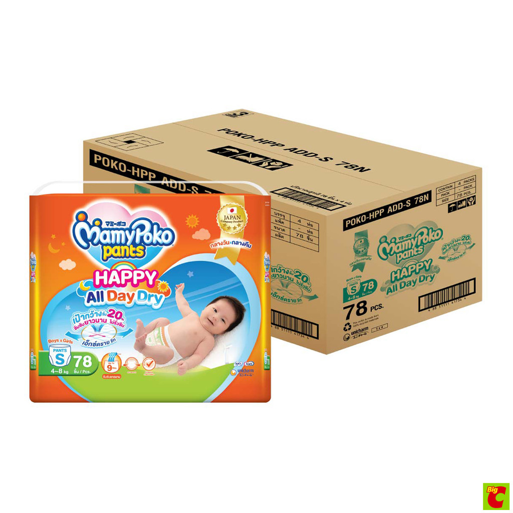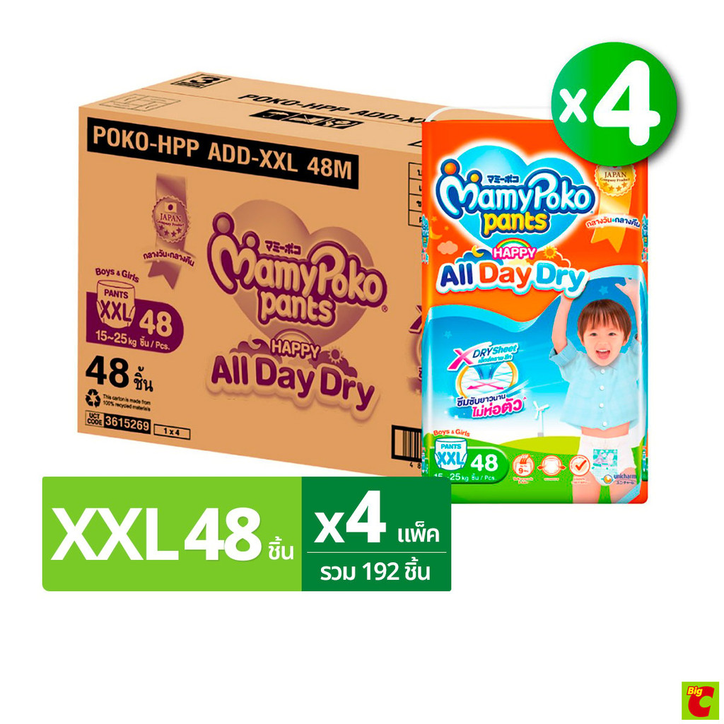 มามี่โพโค แพ้นท์ กางเกงผ้าอ้อม รุ่นแฮปปี้ ออลเดย์ดราย ขนาด S - XXL ชิ้น x 4 แพ็ค