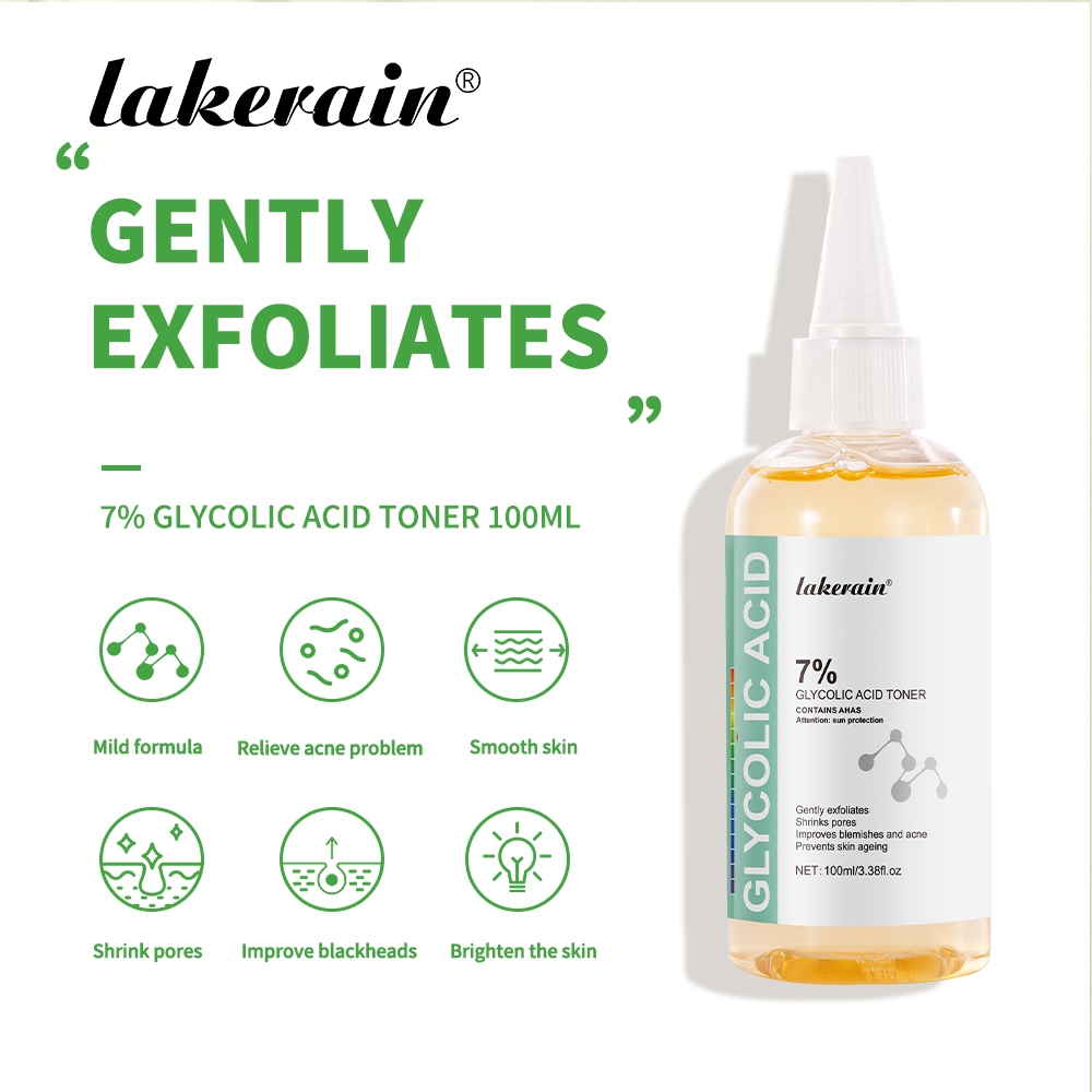Lakerain toner Glycolic Acid 7 % Toning Solution สิวและสิว Spot Marks Remover toner,Anti-Wrinkle Exfoliating Serum สําหรับใบหน ้ า 100ml