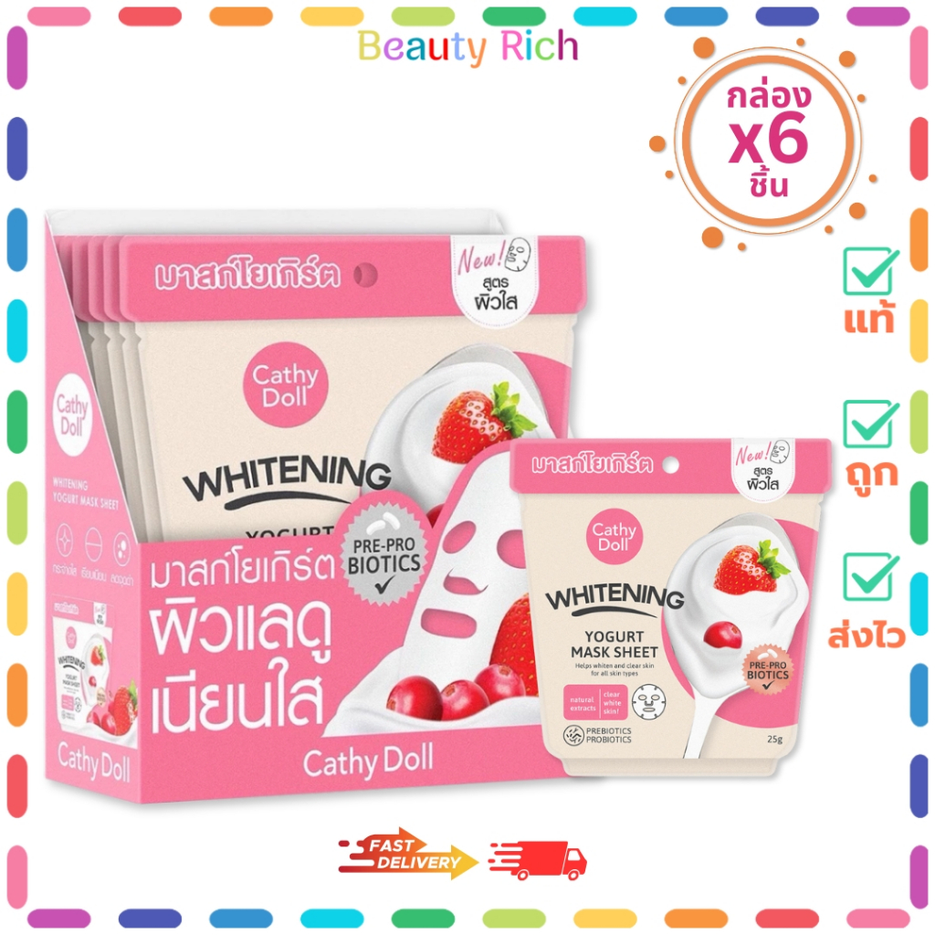 (กล่อง 6 ซอง) Cathy Doll Whitening (สีชมพู) มาสก์หน้าโยเกิร์ต (ปริมาณ 25 กรัม)