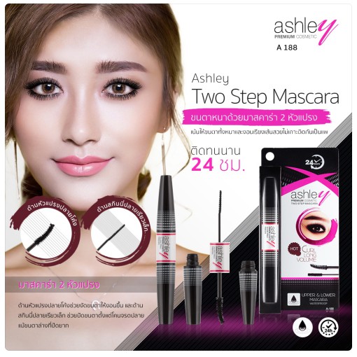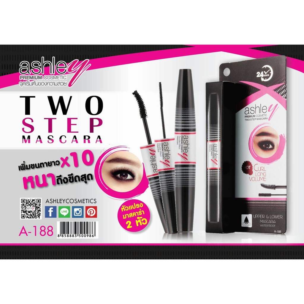 🌟 มาสคาร่า 2 หัวแปรง กันน้ำ แอชลีย์ ASHLEY TWO STEP MASCARA A-188