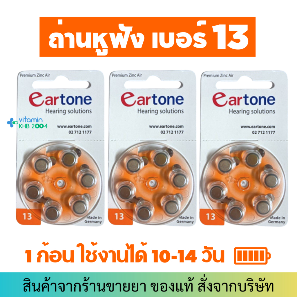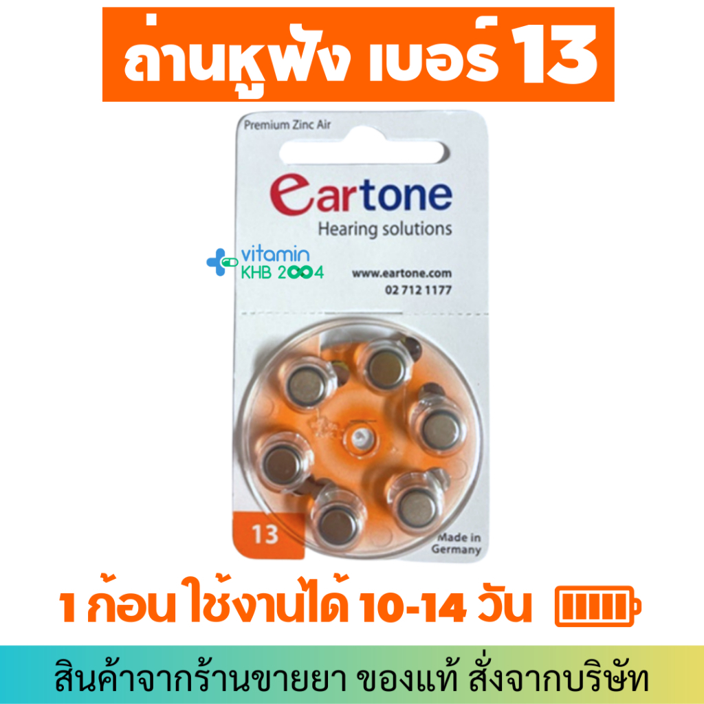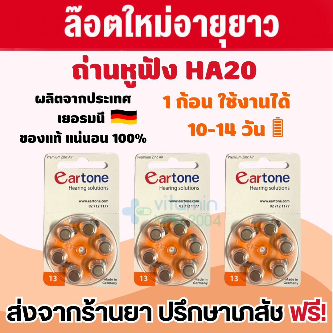 ถ่านEartone *ของแท้* ถ่านหูฟังเบอร์ 13 (6ก้อน) ถ่านเครื่องช่วยฟัง HA20