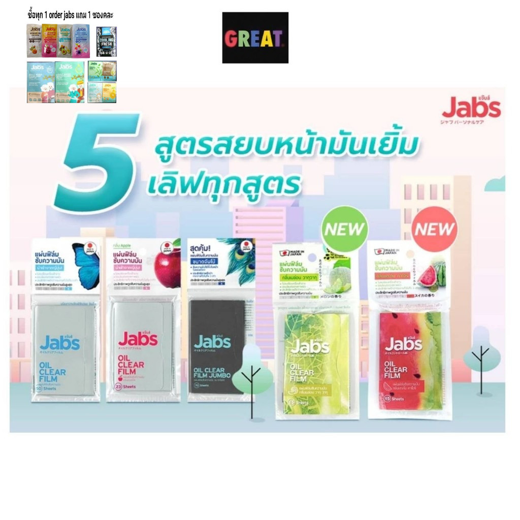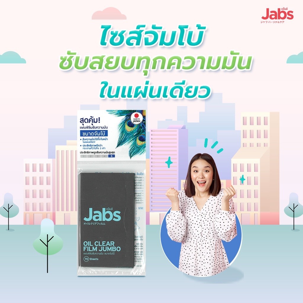 แผ่นฟิล์มซับมัน Jabs Oil Clear Film ซับหน้ามัน แผ่นซับหน้า หน้ามัน คุมมัน กระดาษซับมัน