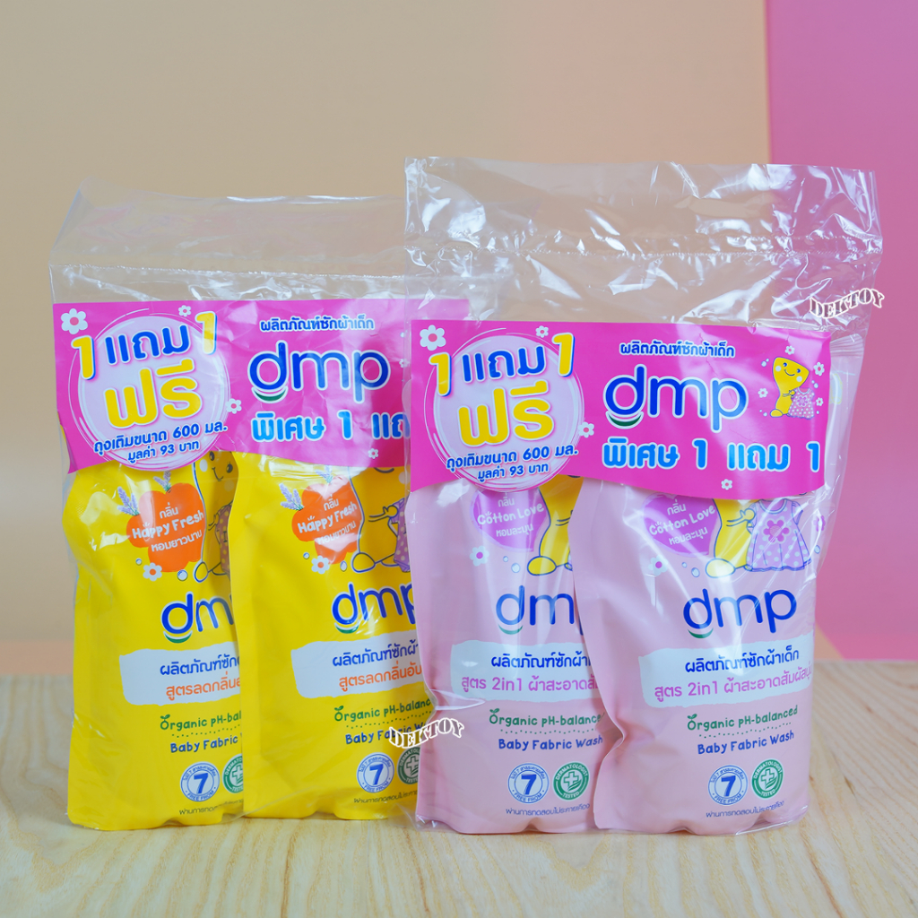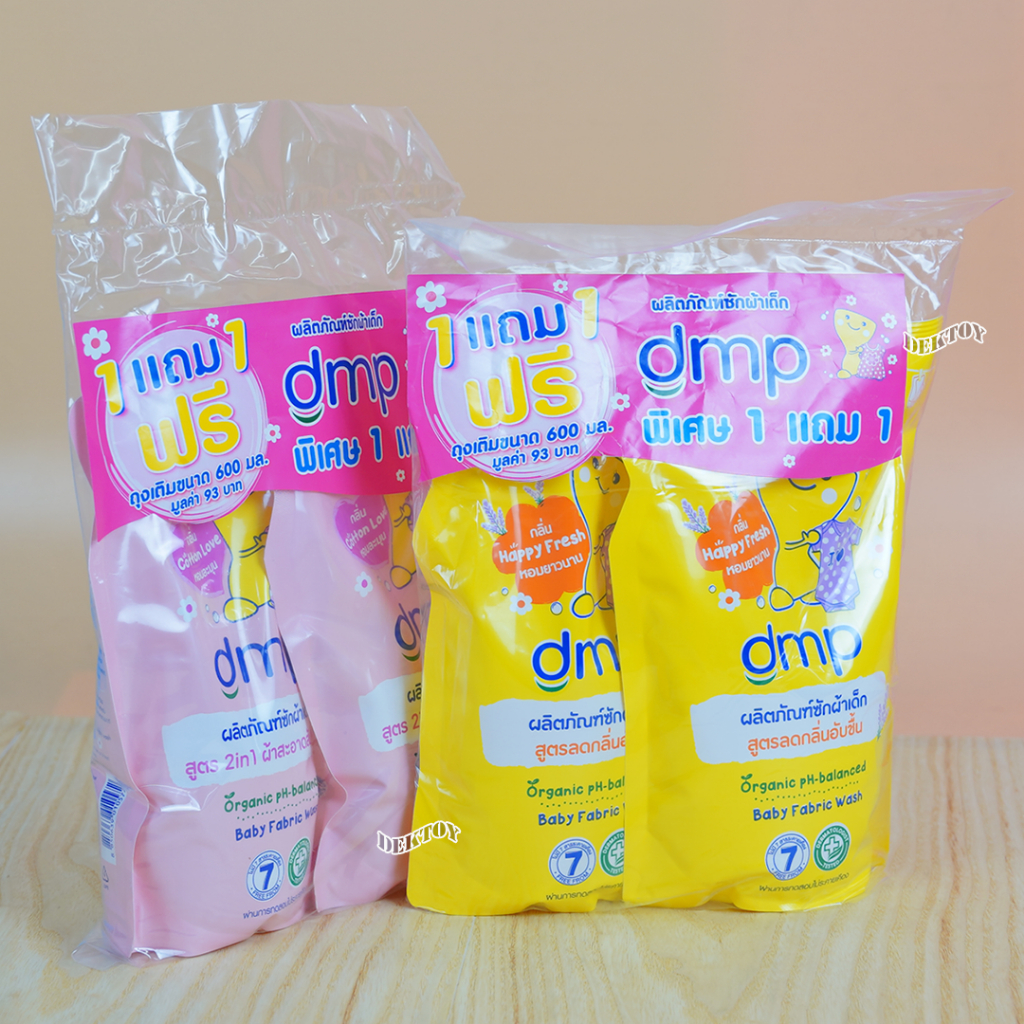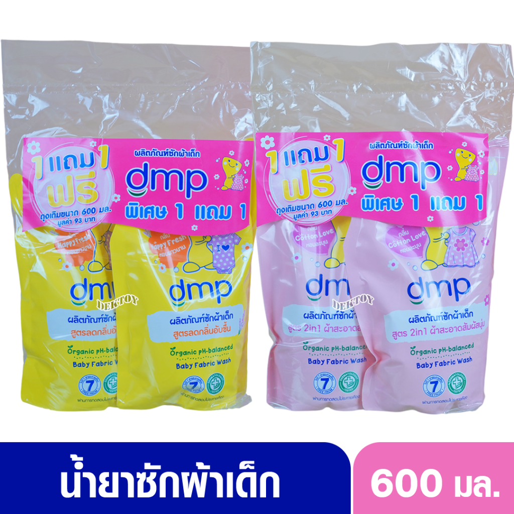 DMP ดีเอ็มพี น้ำยาซักผ้าเด็ก สูตรลดกลิ่นอับ ออร์แกนิค กลิ่น Happy Fresh สีเหลือง 1 ฟรี 1 600 มล.