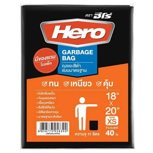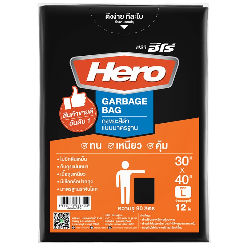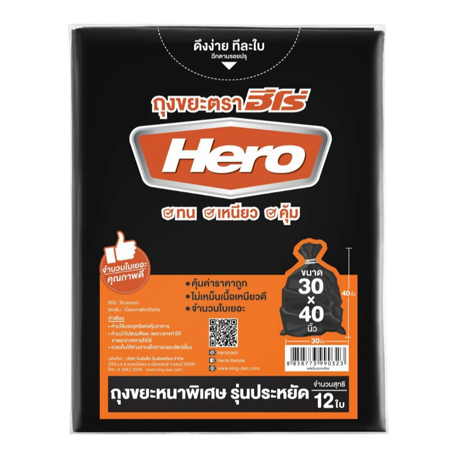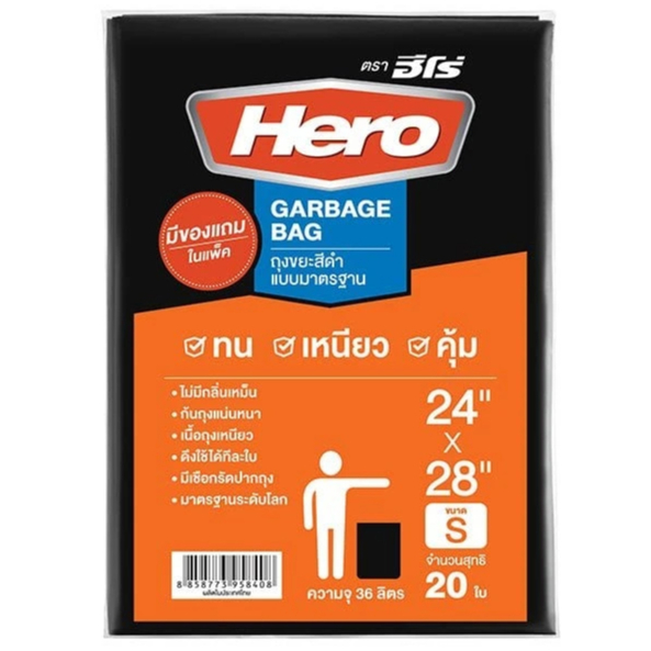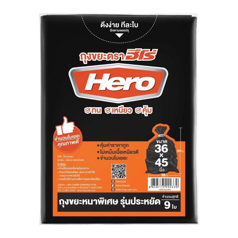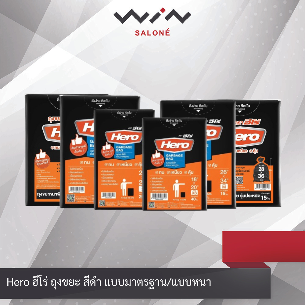 Hero ฮีโร่ ถุงขยะ สีดำ แบบมาตรฐาน/แบบหนา
