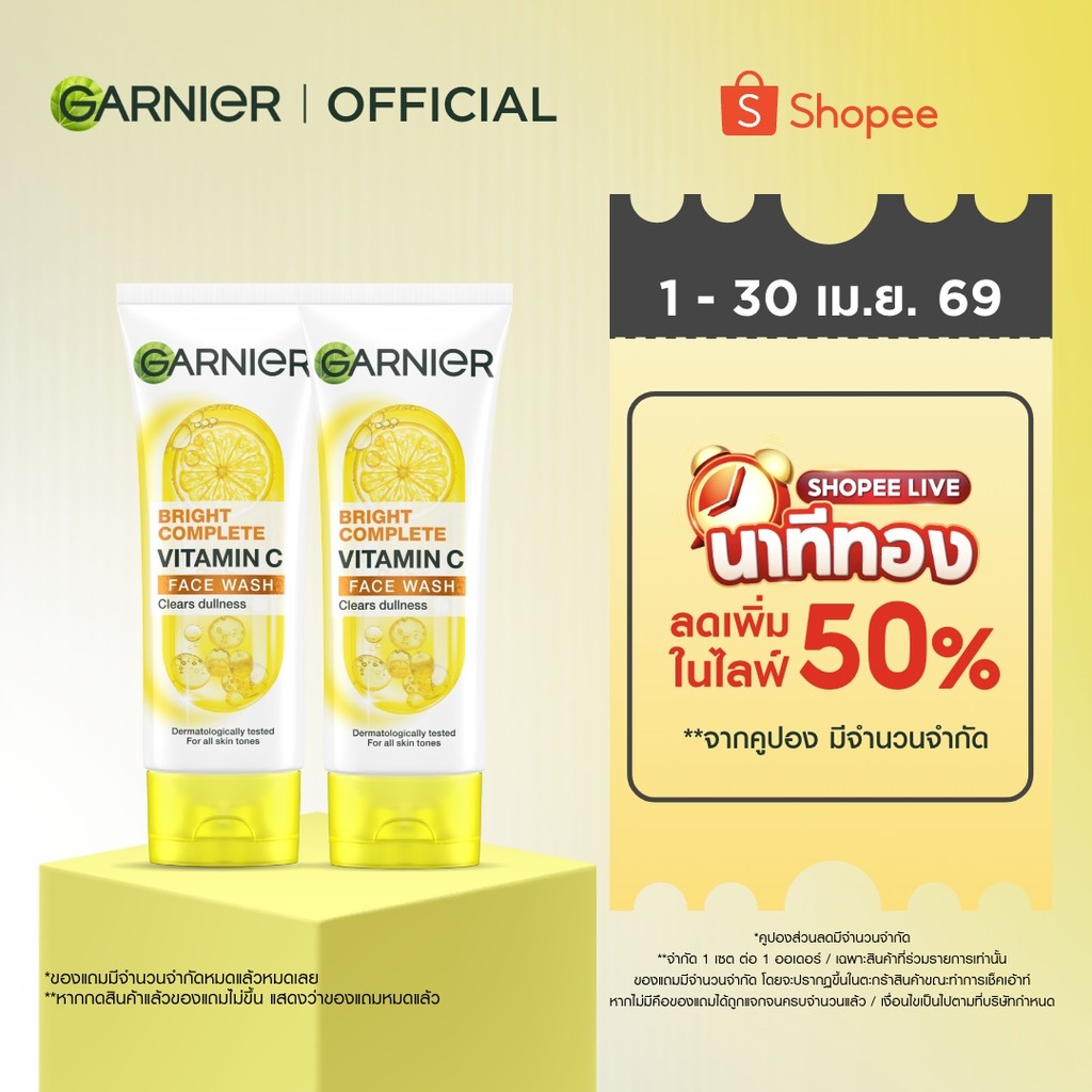 การ์นิเย่ ไบรท์ คอมพลีท วิตามินซี เฟส วอช โฟม 100 มล.x2 GARNIER VITAMIN C FOAM 100 mlx2 (คลีนซิ่ง, โฟมล้างหน้า)