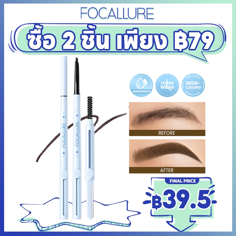 Focallure Pro-shaping 3-in-1 ดินสอเขียนคิ้ว ทรงสามเหลี่ยม อเนกประสงค์ พร้อมแปรงในตัว และมีดโกน ติดทนนาน กันน้ํา เรียบลื่น ไม่เป็นรอย