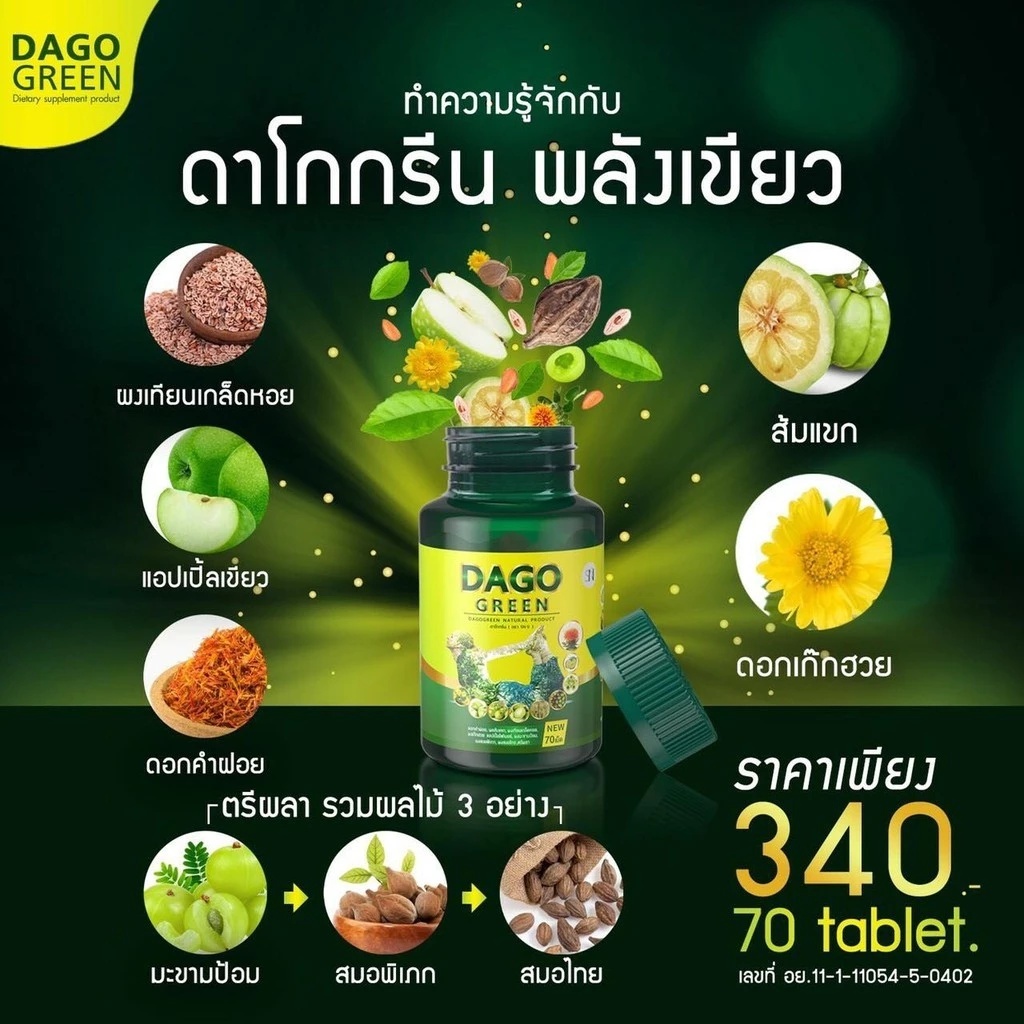 (เซต 10กระปุก) DAGO GREEN ดาโกกรีน ขนาด 70เม็ด