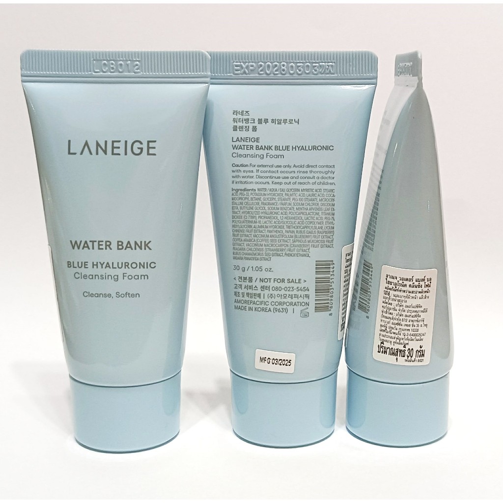 ลาเนจโฟม , เจลล้างหน้า 30 g. LANEIGE WATER BLUE HYALURONIC Cleansing Foam ลาเนจ โฟมล้างหน้า ลาเนจเจลล้างหน้า