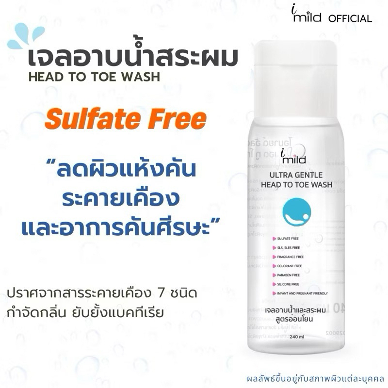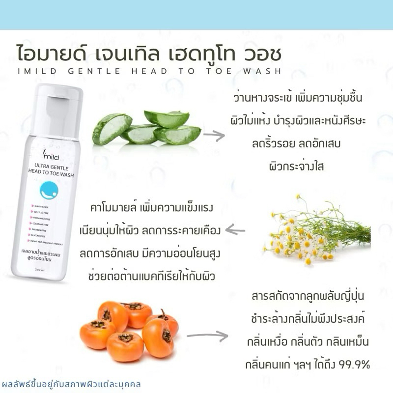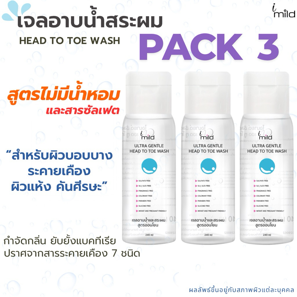 เจลอาบน้ำและสระผม (Pack3) สำหรับผิวแห้ง หนังศีรษะแห้ง คันจากผิวแห้ง แพ้ง่าย เด็ก คนท้อง ใช้ได้ imild