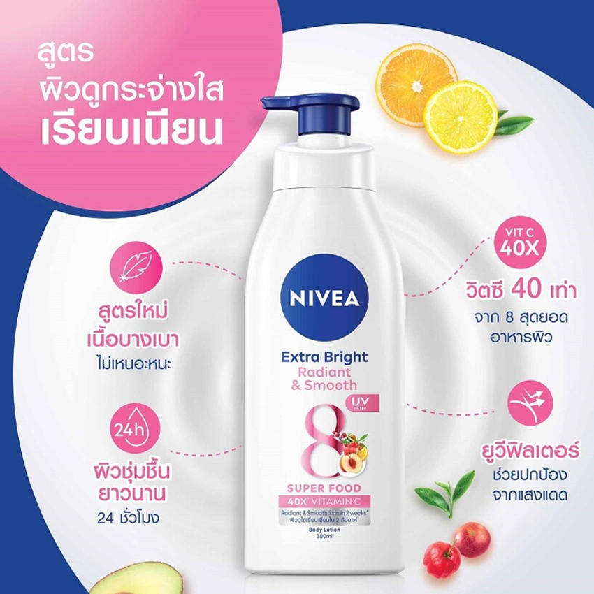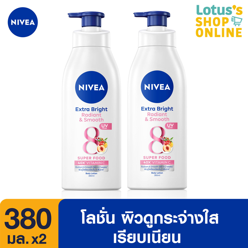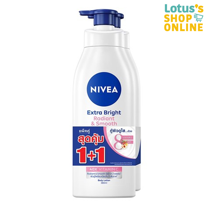 นีเวีย เอ็กซ์ตร้า ไบรท์ เรเดียนท์ แอนด์ สมูท บอดี้ โลชั่น ขนาด 380 มล.X 2 ขวด NIVEA EXTRA BRIGHT RADIANT AND SMOOTH BODY