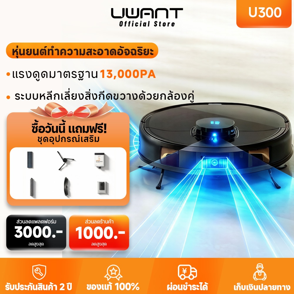 【Uwant】 U300 Robot Vacuum and Mop Cleaner หุ่นยนต์ดูดฝุ่น ถูพื้น ซักผ้าถู อบผ้าแห้ง