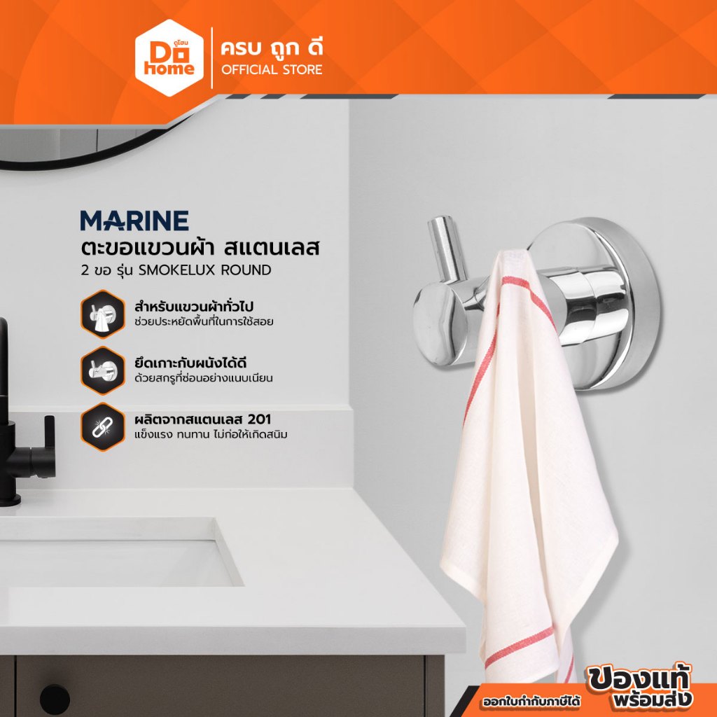 MARINE ตะขอแขวนผ้า สแตนเลส 2 ขอ รุ่น SMOKELUX ROUND |ZWF|