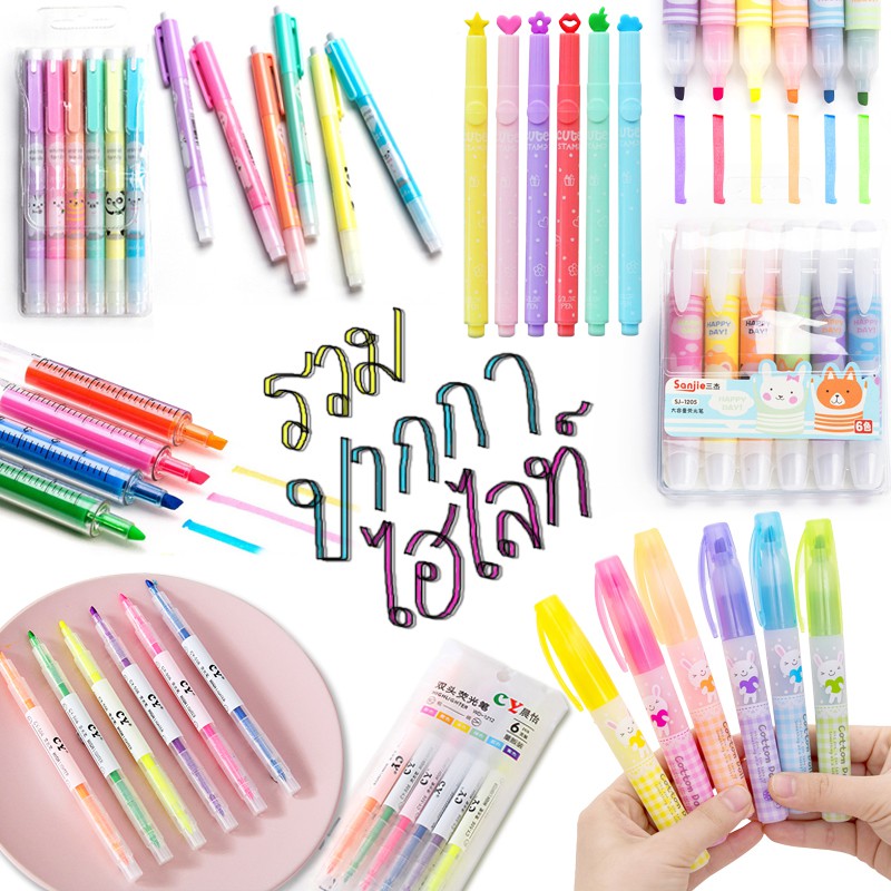 🖌ปากกาเน้นข้อความ ปากกาไฮไลท์ แห้งเร็ว เริ่มต้นแท่งละ 3 บาท (🎲สุ่มสี) เครื่องเขียน เน้นข้อความ