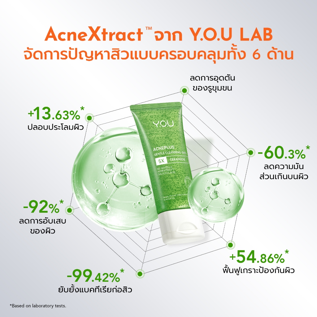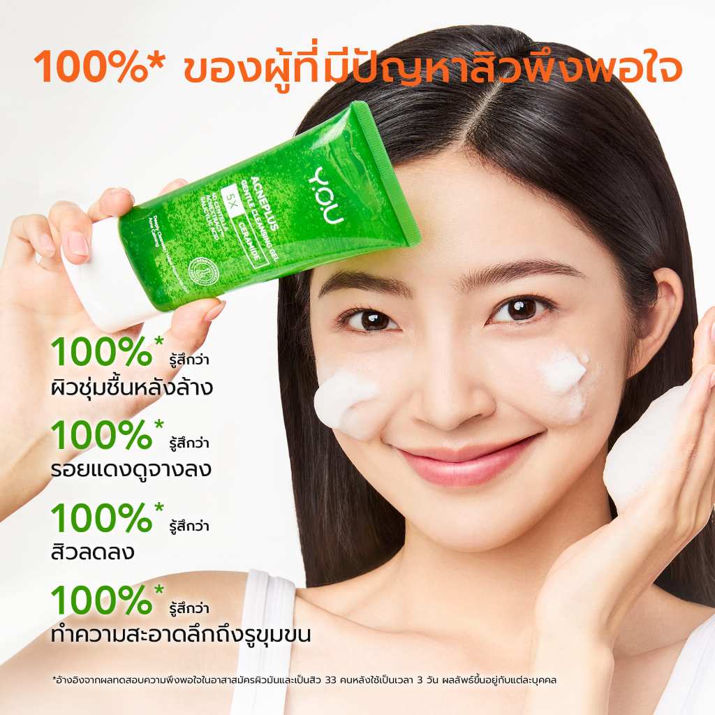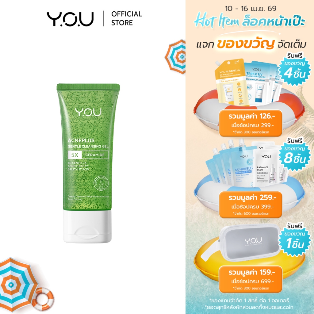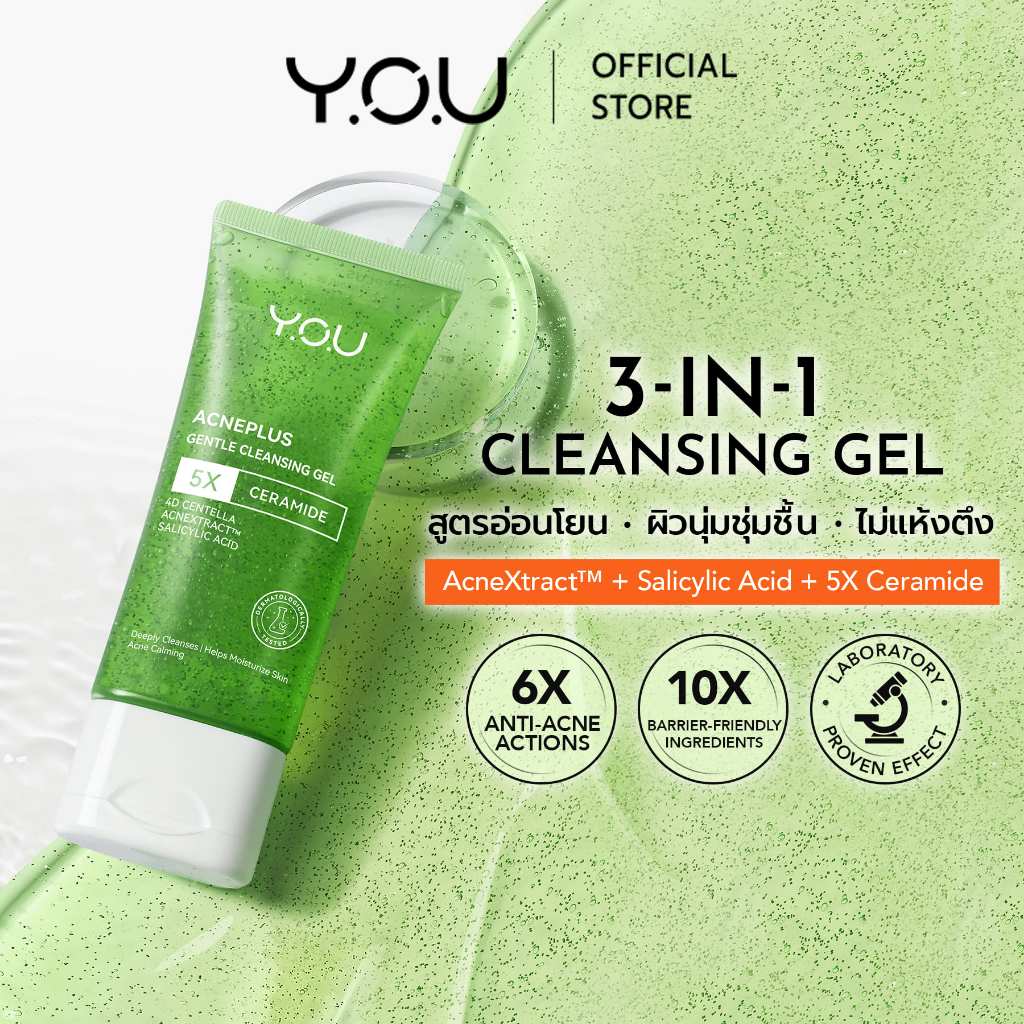YOU AcnePlus Gentle Cleansing Gel 100g. เจลล้างหน้าสูตรอ่อนโยน สำหรับผิวเป็นสิ วผิวแพ้ง่าย ไม่แห้งตึง ผิวนุ่มชุ่มชื้น
