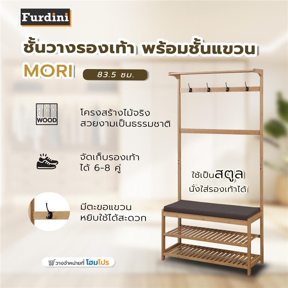 FURDINI ชั้นวางรองเท้า พร้อมชั้นแขวน MORI 83.5 ซม. สี NATURAL จัดส่งโดย HomePro