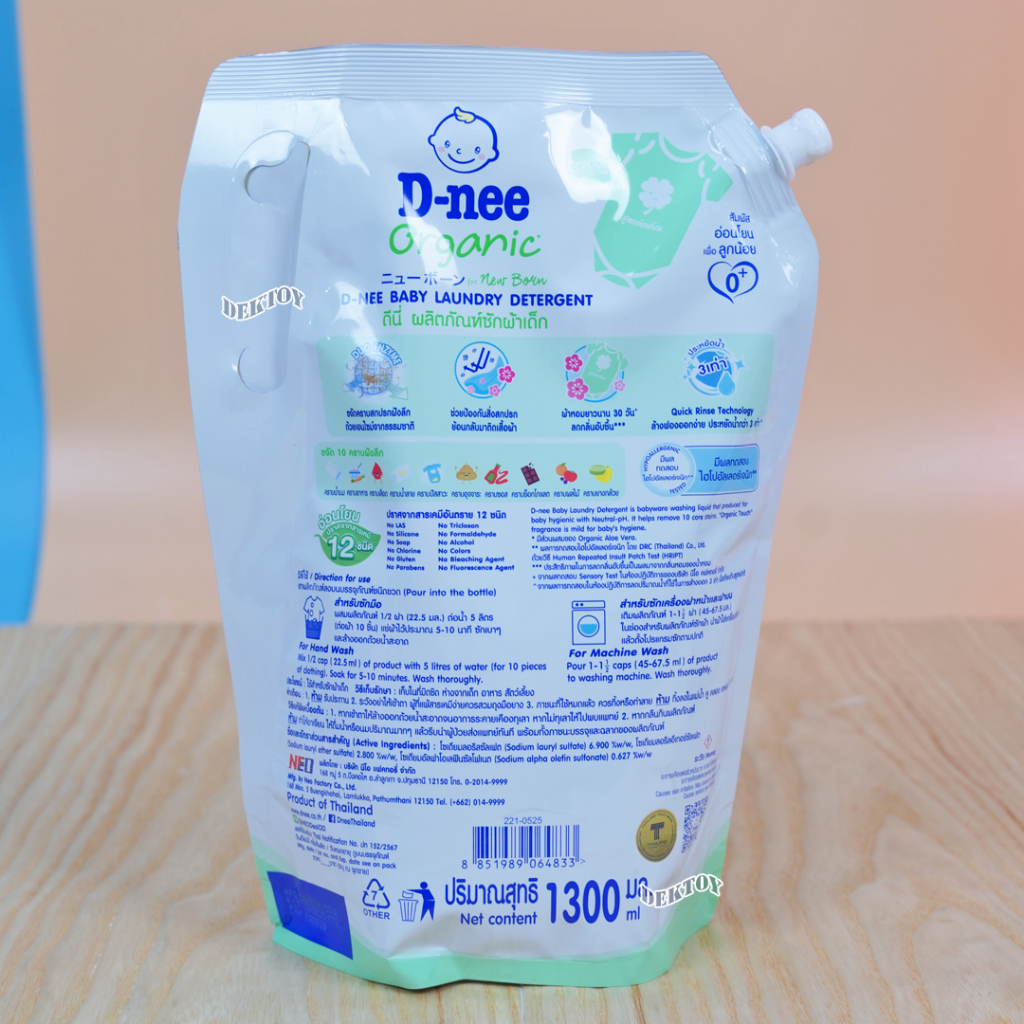 1 แถม1 D-nee ดีนี่ น้ำยาซักผ้าเด็กดีนี่นิวบอร์นออแกนิคอโลเวร่า 1300 มล. (2ถุง) สีเขียวกลิ่นหอมอ่อนโยน