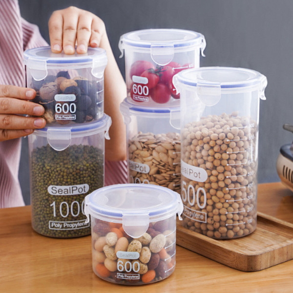 anastasia_66.shop กระปุกพลาสติกใส ทรงกระบอก กันความชื้น กันรั่วซึม สําหรับเก็บอาหาร
