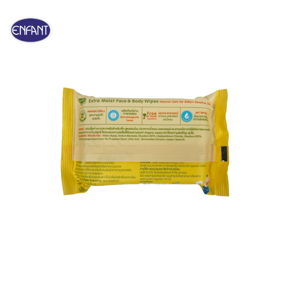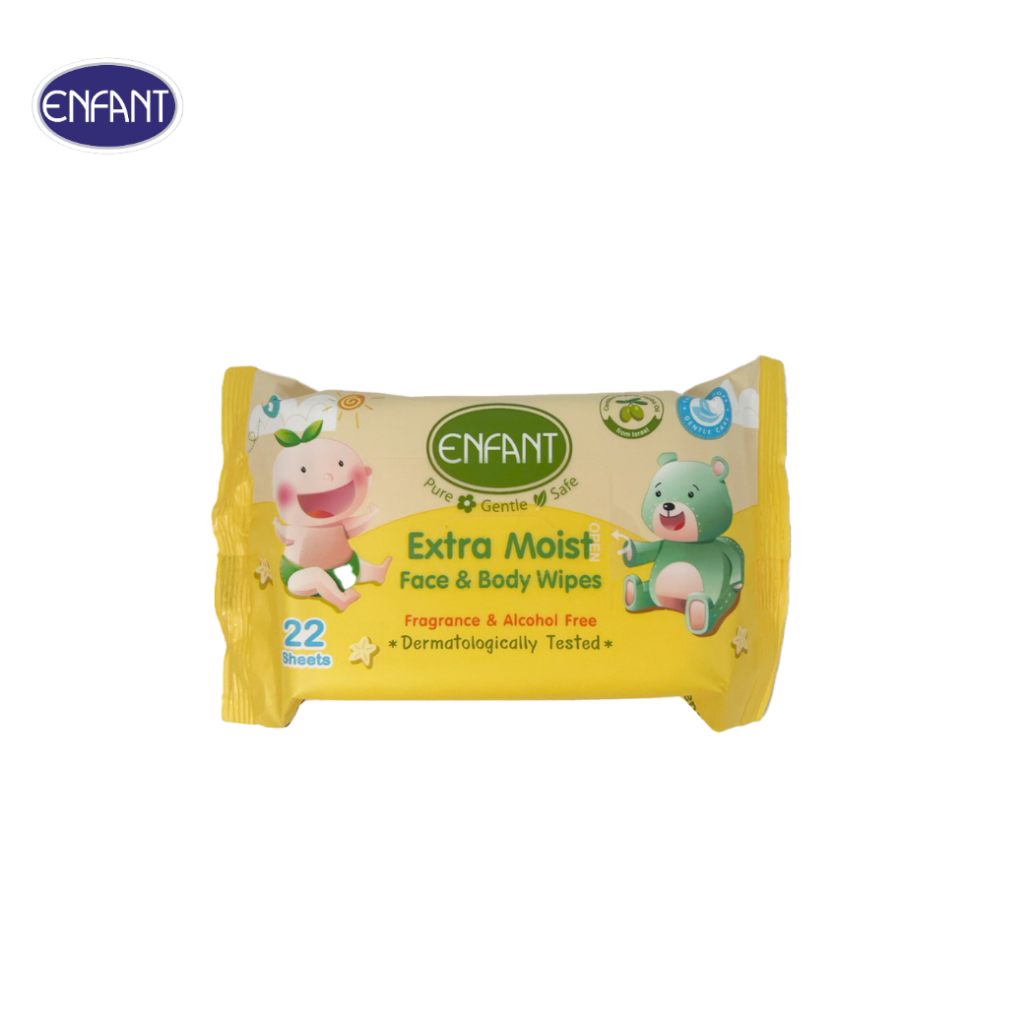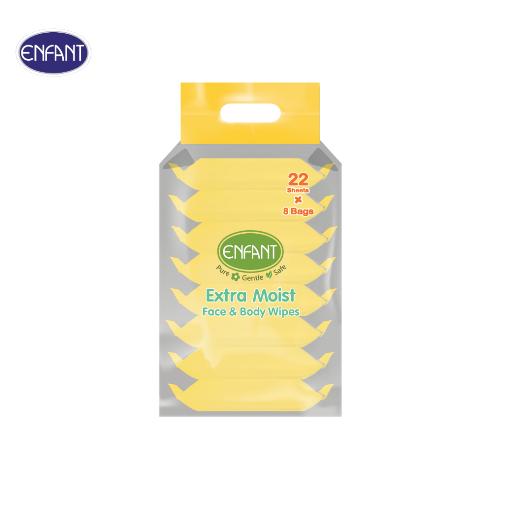 ENFANT (อองฟองต์) Extra Moist Face & Body Wipes ผ้าเช็ดทำความสะอาดแบบเปียก สูตร Organic Jojoba Oil 1แพ็ค/8ห่อ 22แผ่น/ห่อ