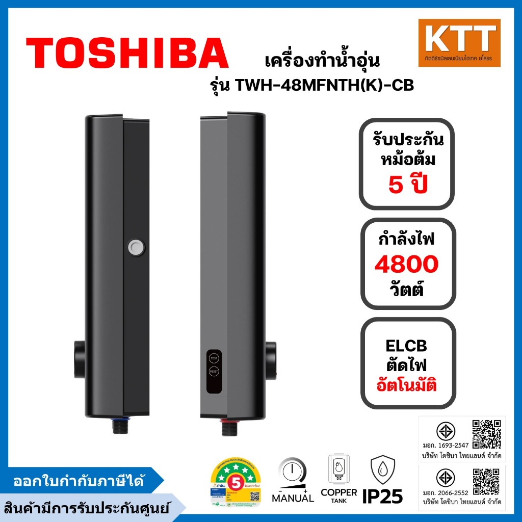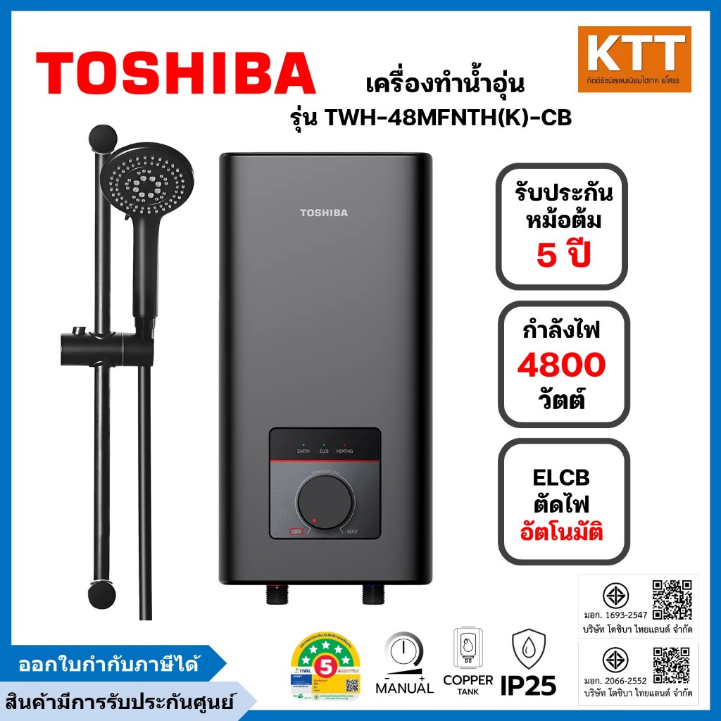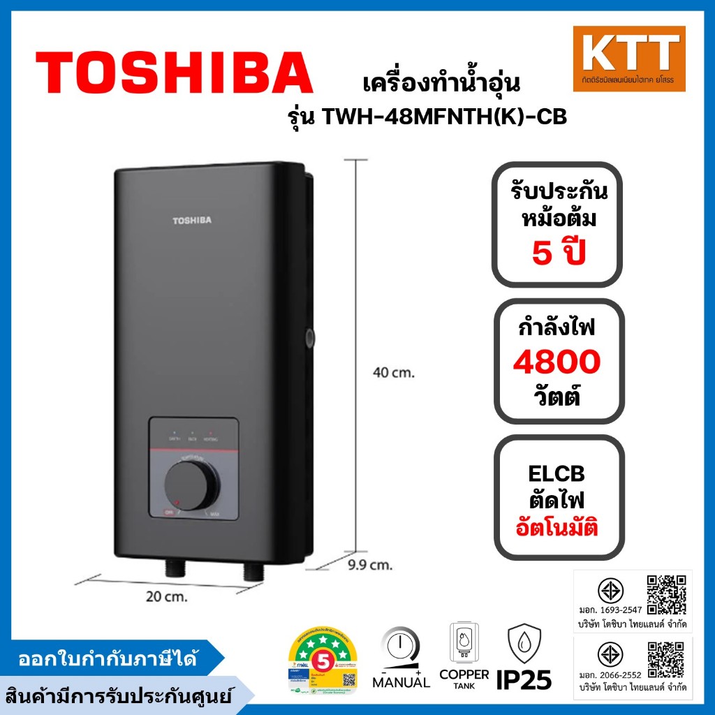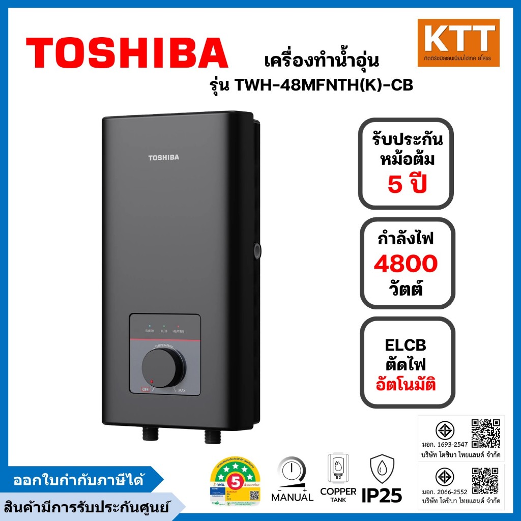 TOSHIBA เครื่องทำน้ำอุ่น 4,800 วัตต์ รุ่น TWH-48MFNTH(K)-CB สีดำ