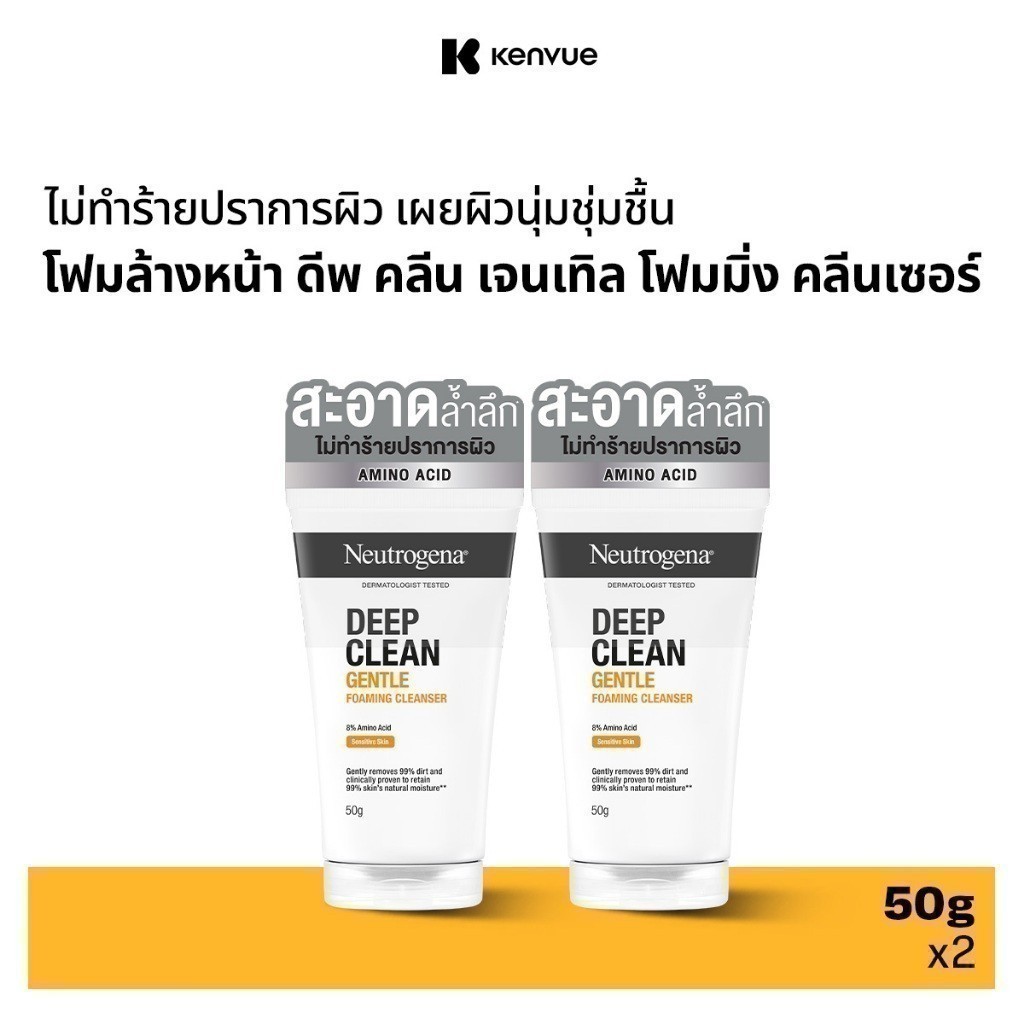 Neutrogena DC Gentle FC 50g x 2 นูโทรจีนา ดีพ คลีน เจนเทิล โฟมมิ่ง คลีนเซอร์ 50 กรัม x 2, โฟมล้างหน้า, 8% Amino Acid