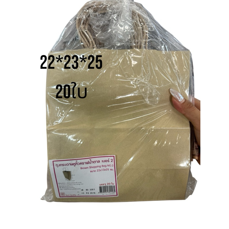 ถุงคราฟ กระดาษ มีหูหิ้ว เบอร์2 20ใบ ขนาด22*23*25ซม.