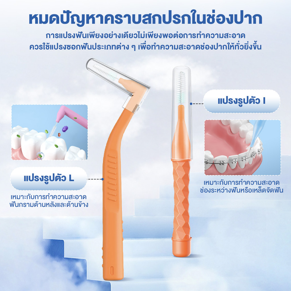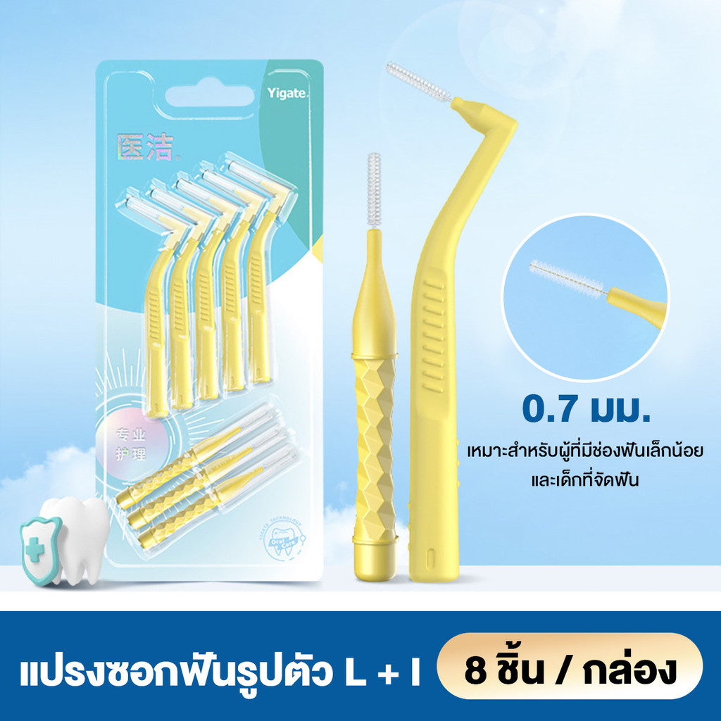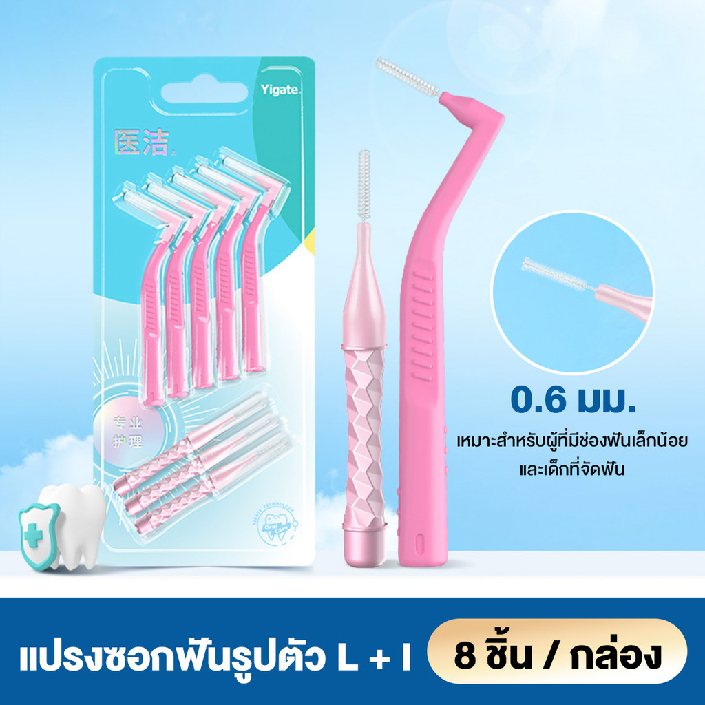 8 ชิ้น แปรงซอกฟัน รูปตัว L+I แปรงขัดซอกฟัน แปรงจัดฟัน Interdental Brush 0.4-1.5 มม แป รงขัดซอกฟันตัวแอล นสำหรับคนจัดฟัน