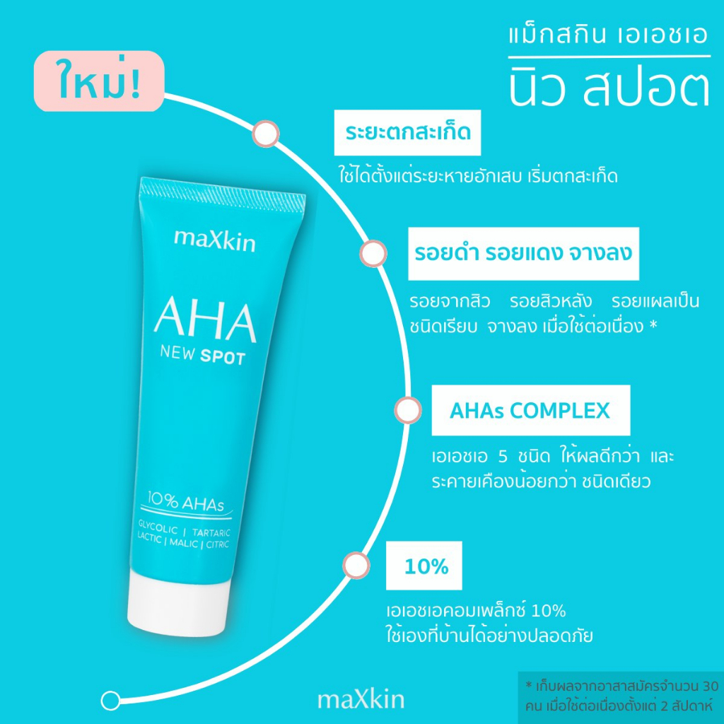 Maxkin AHA Skin Treatment Cream 10% (หลอดฟ้า) ขจัดเซลล์ผิวที่เสื่อมสภาพ ลดฝ้า AHA NEW SPOT 10%