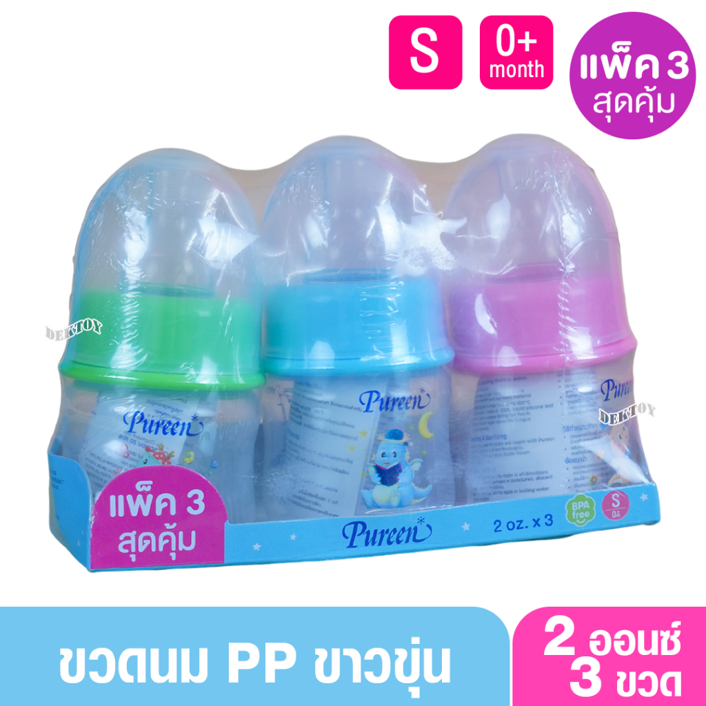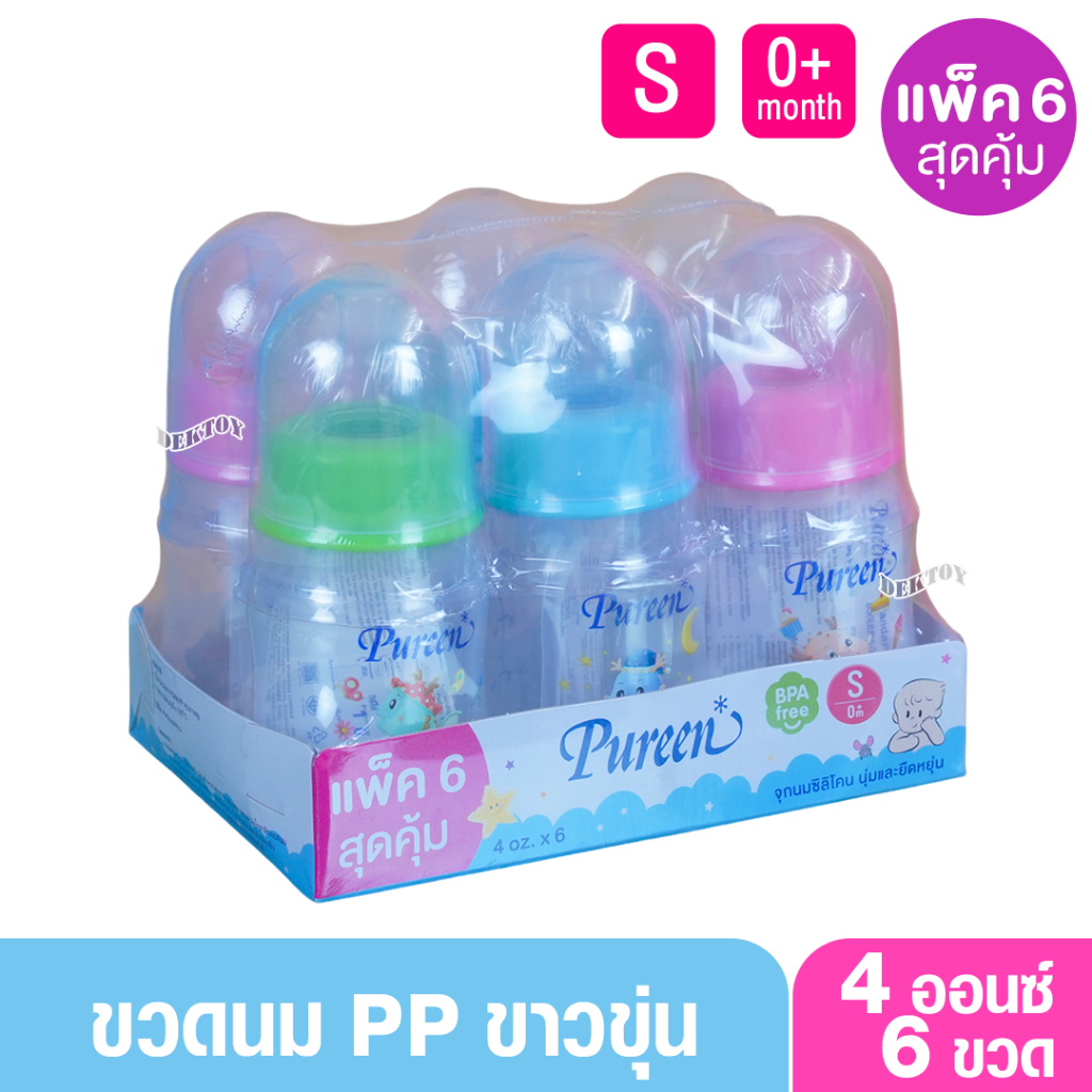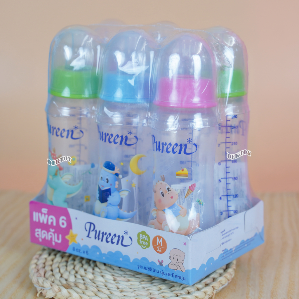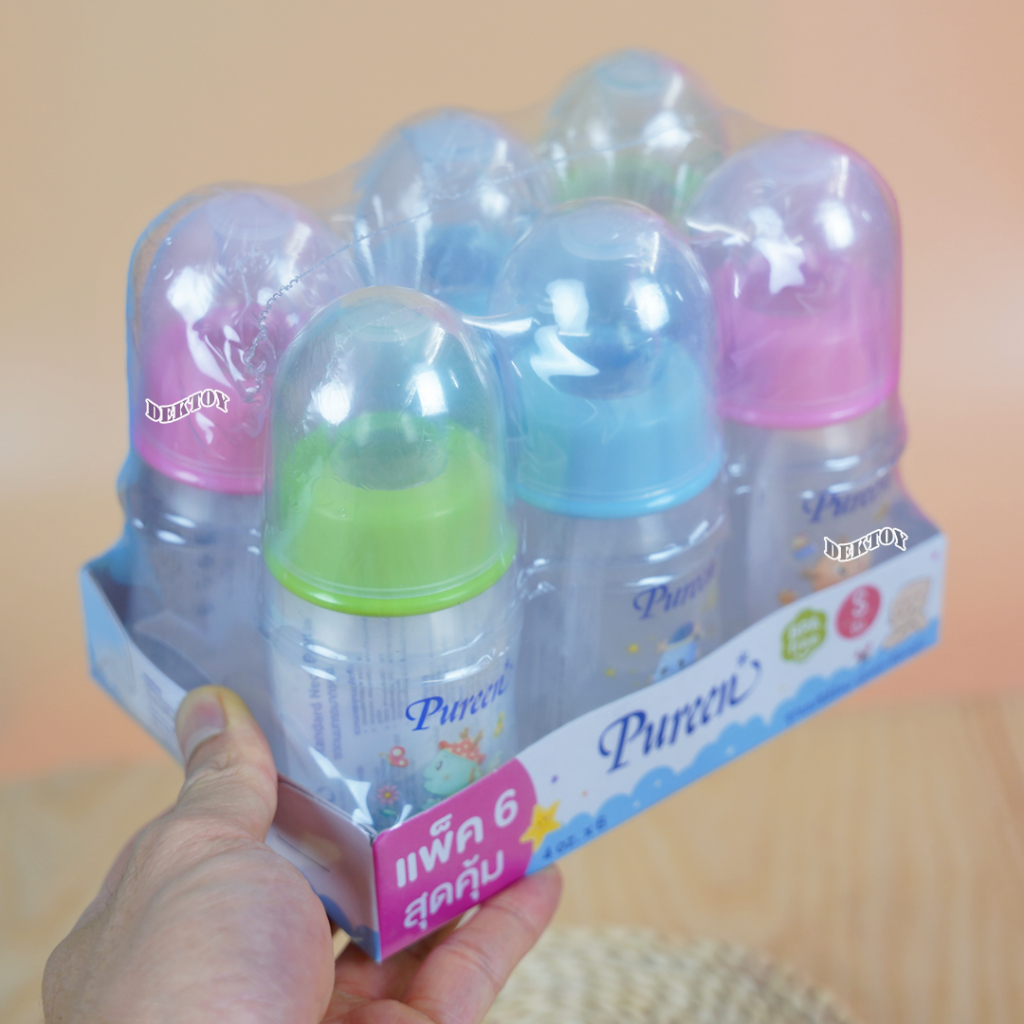 Pureen เพียวรีน ขวดนมเพียวรีน PP แพ็ค6ขวด ขาวขุ่น ลายที่3