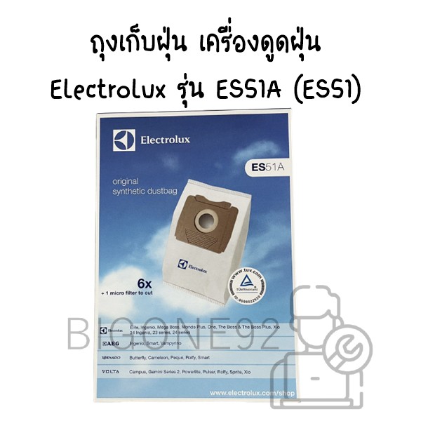 พร้อมส่ง ถุงเก็บฝุ่น เครื่องดูดฝุ่น Electrolux รุ่น ES51A (เดิม ES51) ใช้กับหลายรุ่น (6ชิ้น/แพ็ค + 1 micro filter)