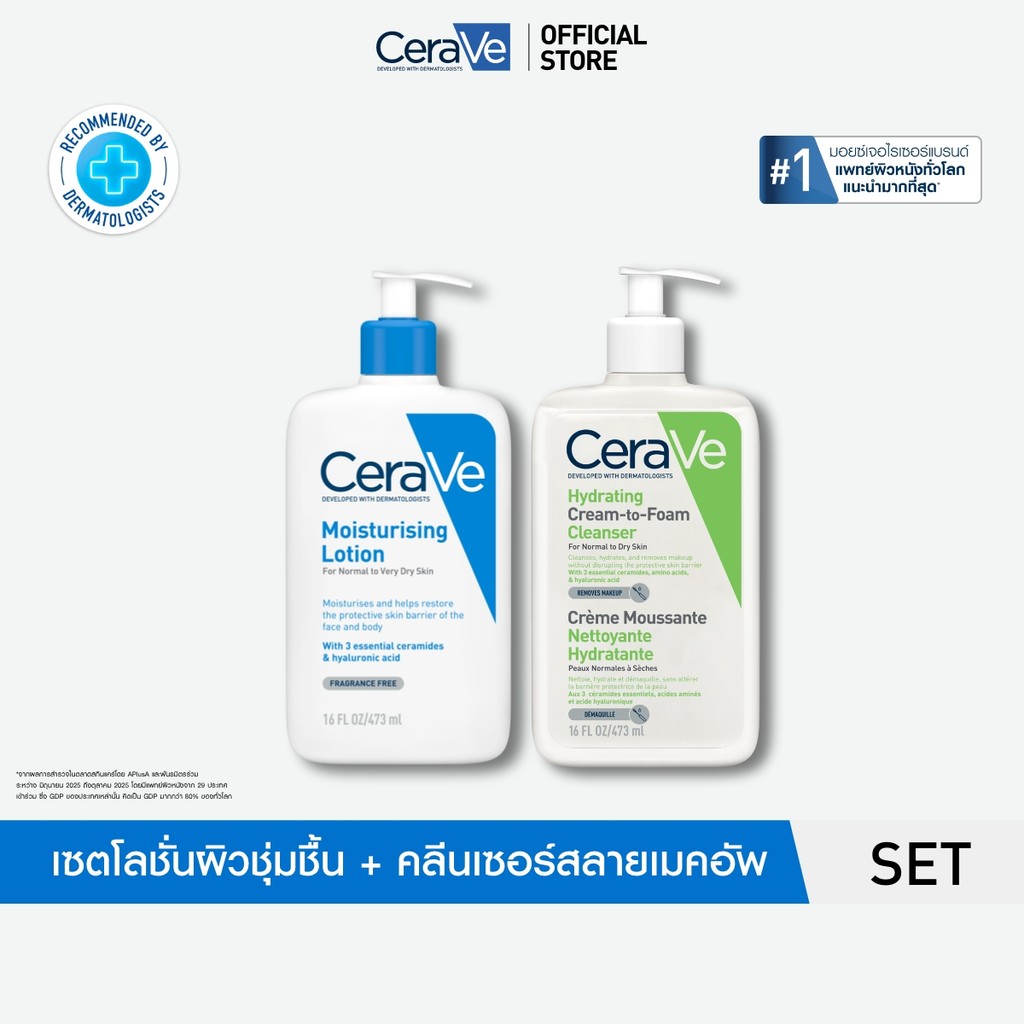 [เซตสุดคุ้ม] CeraVe Moisturising Lotion เเละ Cream to Foam Cleanser 473ml โลชั่นกู้ผิวเเห้ง เเละ คลีนเซอร์ ล้างเมคอัพ