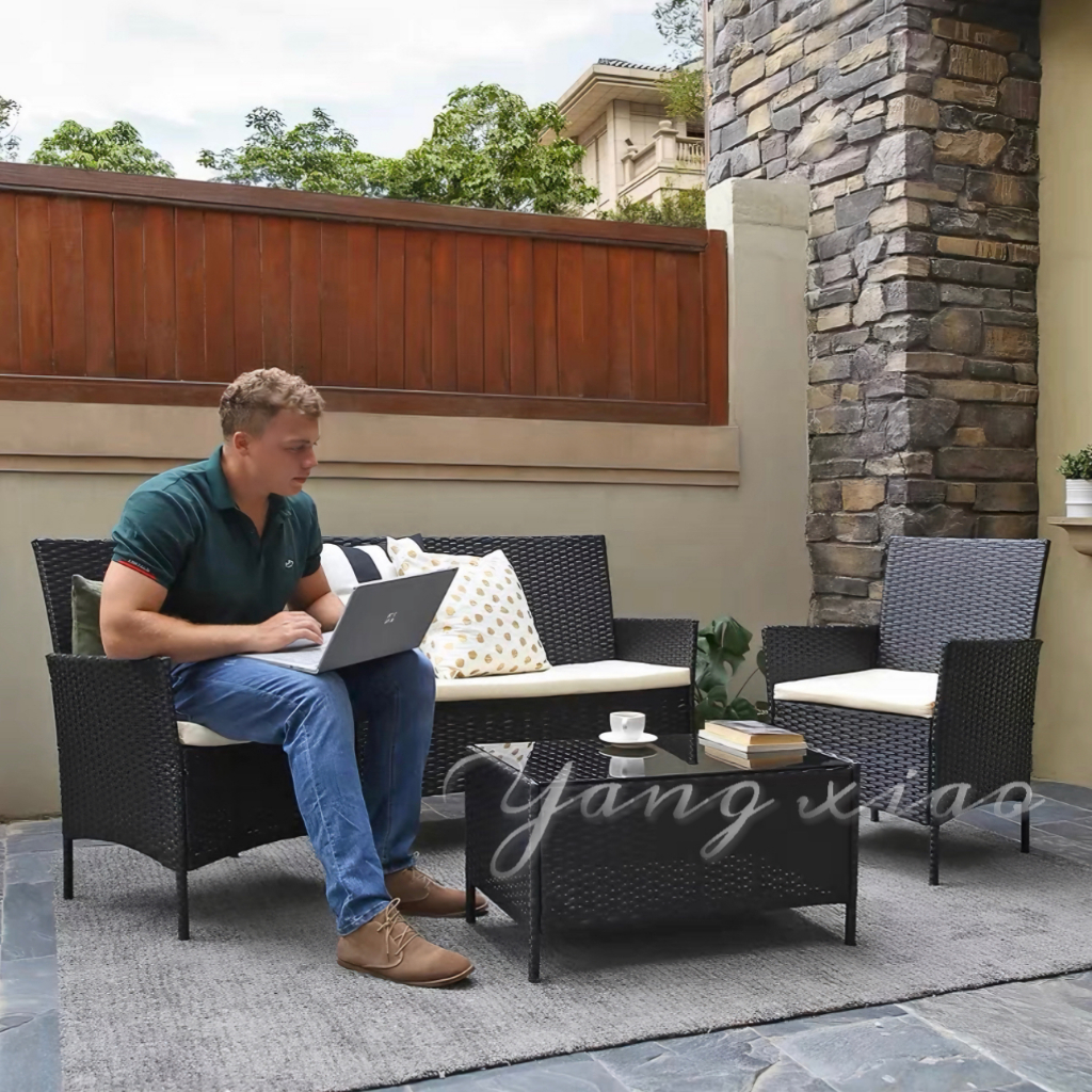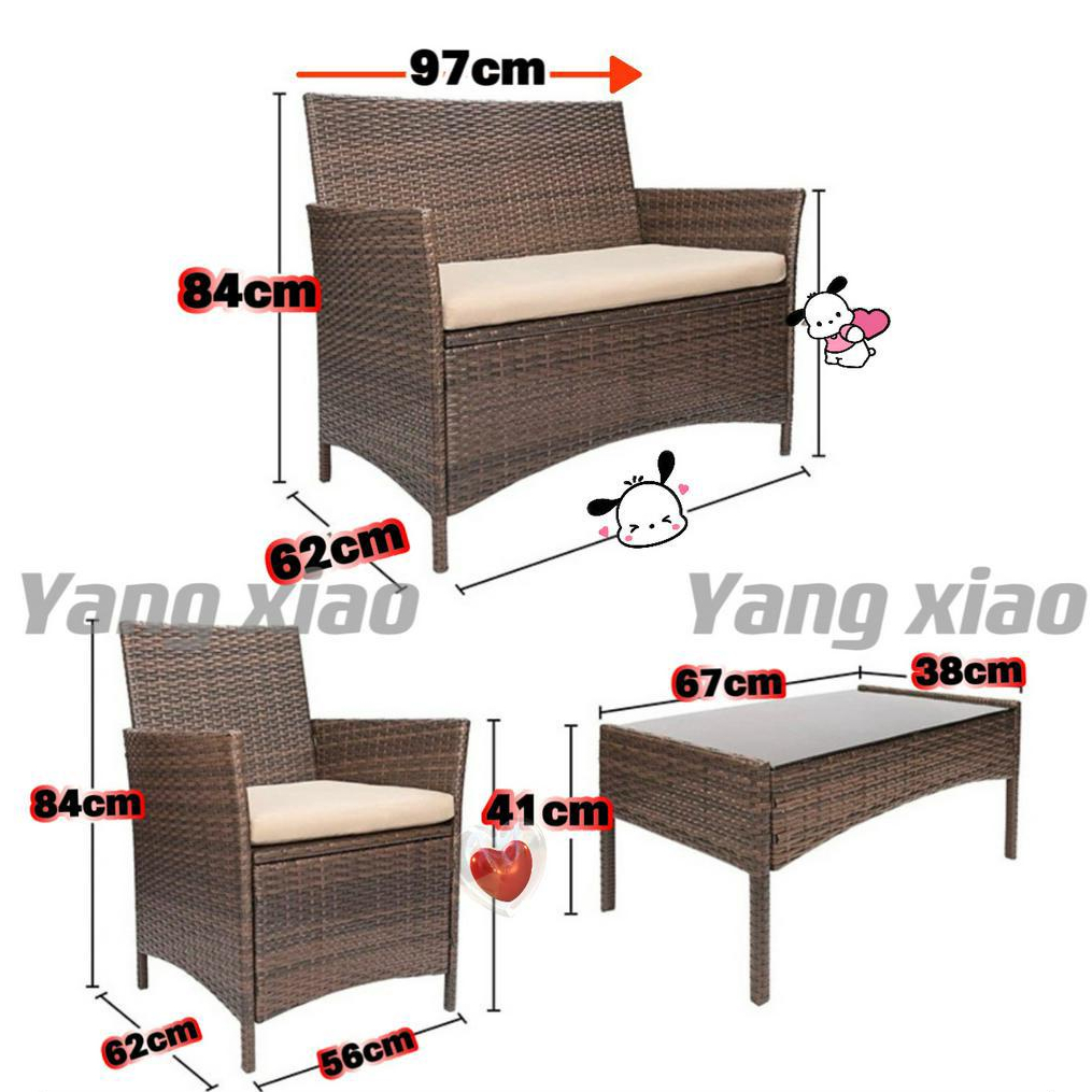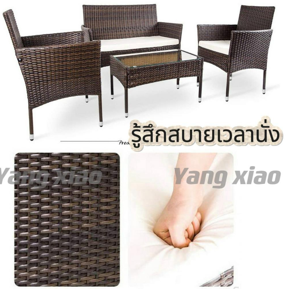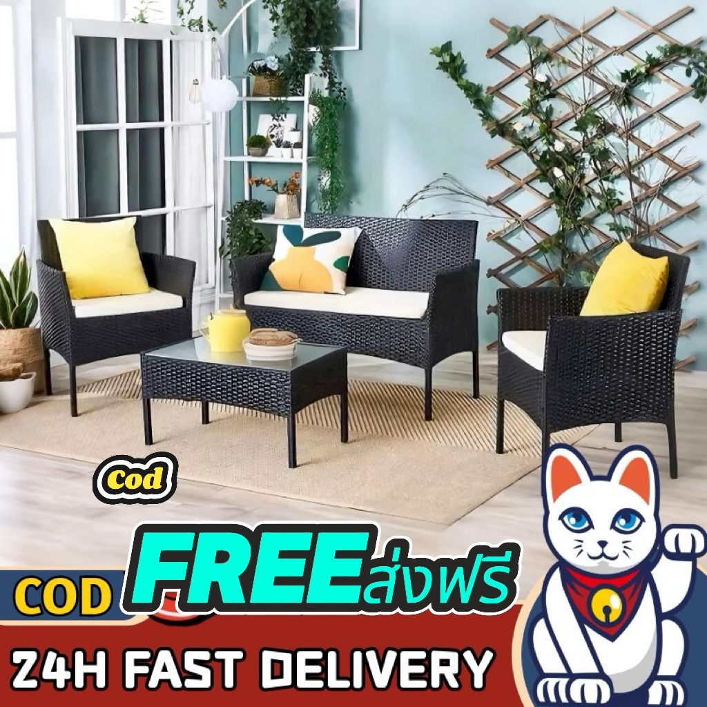 Lucky😸(พร้อมส่ง Cod)ชุดรับแขกกลางแจ้ง ชุดโซฟารับแขกผลิตจากหวายเทียมพลาสติก ทนแดดฝน แข็งแรงทนทาน