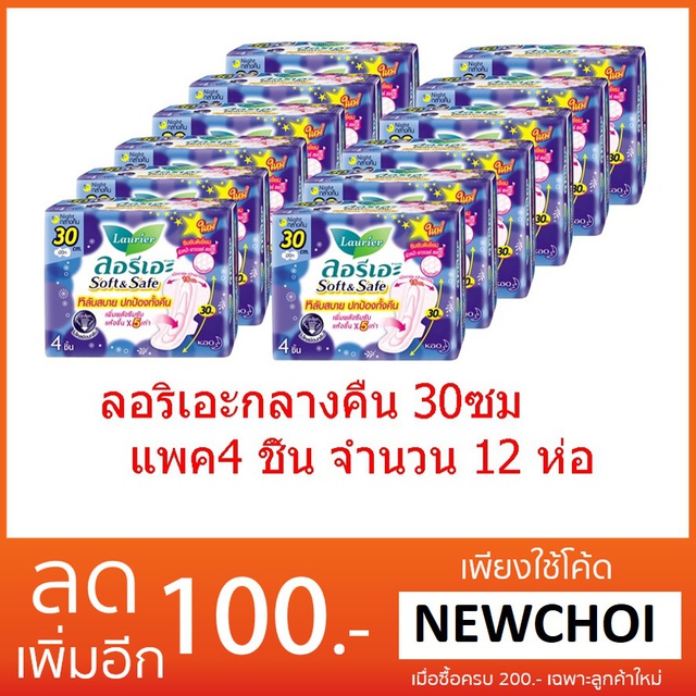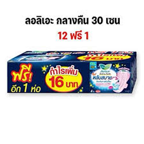 NS ลอริเอะกลางคืน 30 ซม.รุ่นแพค 4 ชิ้น แพ็ค12+แถม1ห่อ