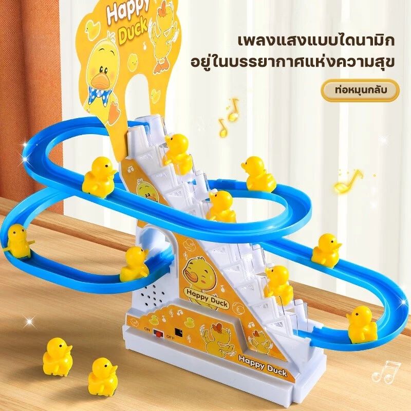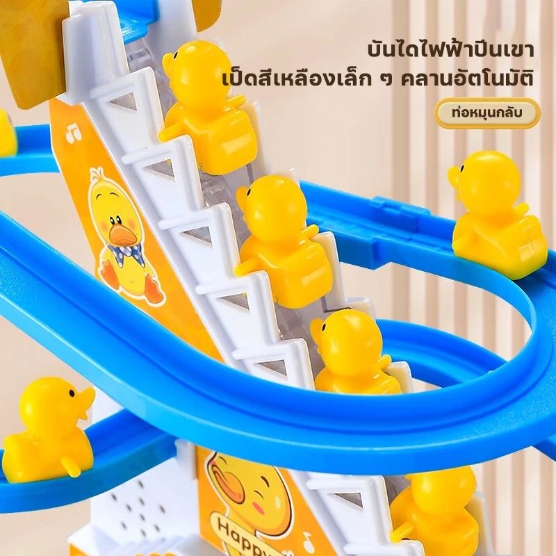 ของเล่นเด็ก เป็ดน้อยปีนบันได รางสไลด์ไฟฟ้า พร้อมเป็ด 3 ตัว มีไฟและเพลง ส่งเสริมพัฒนาการ
