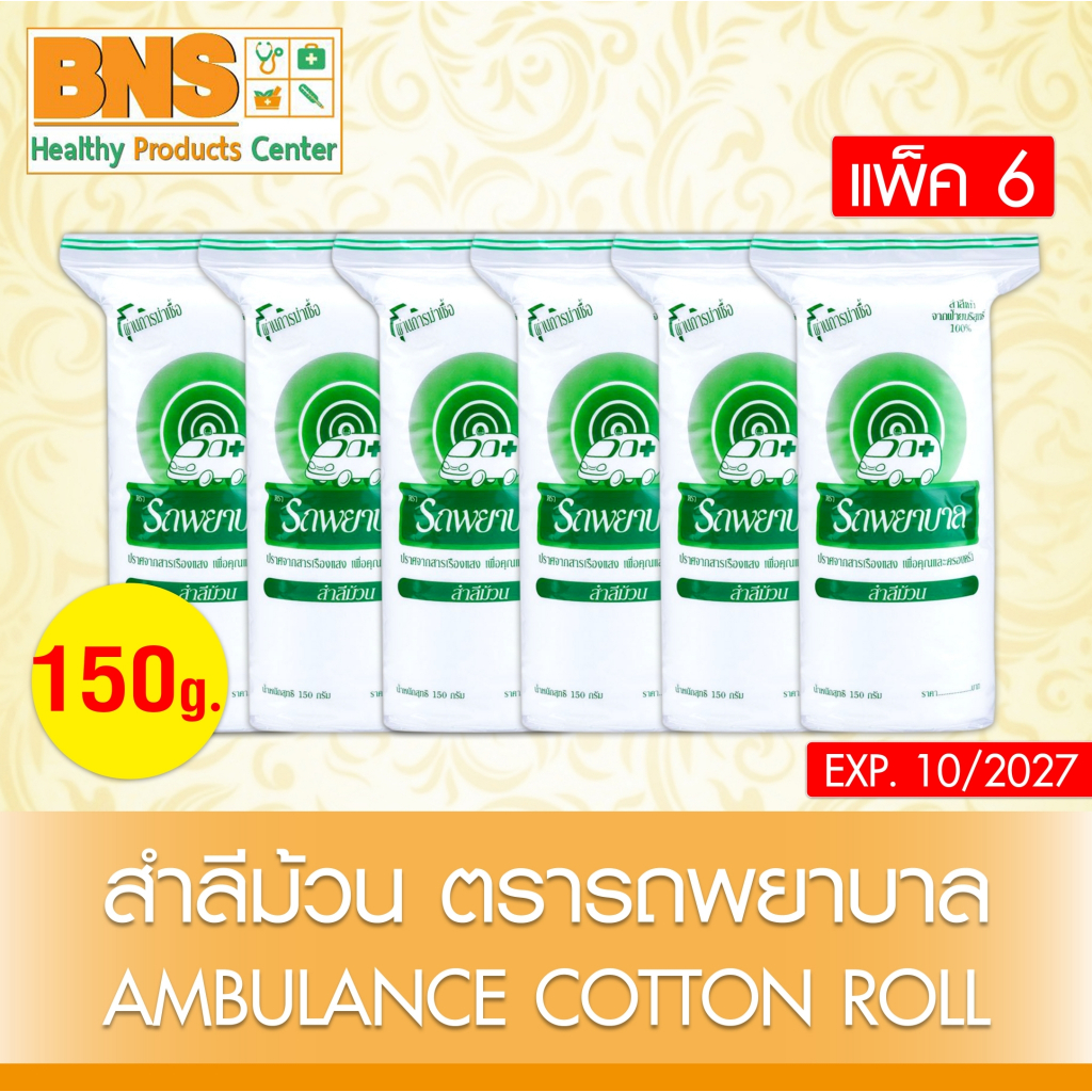 ส่งเร็ว !! ( แพ็ค 6 ม้วน ) สำลี รถพยาบาล สำลีม้วน 150 กรัม Cotton Roll (สินค้าขายดี)(ถูกที่สุด)