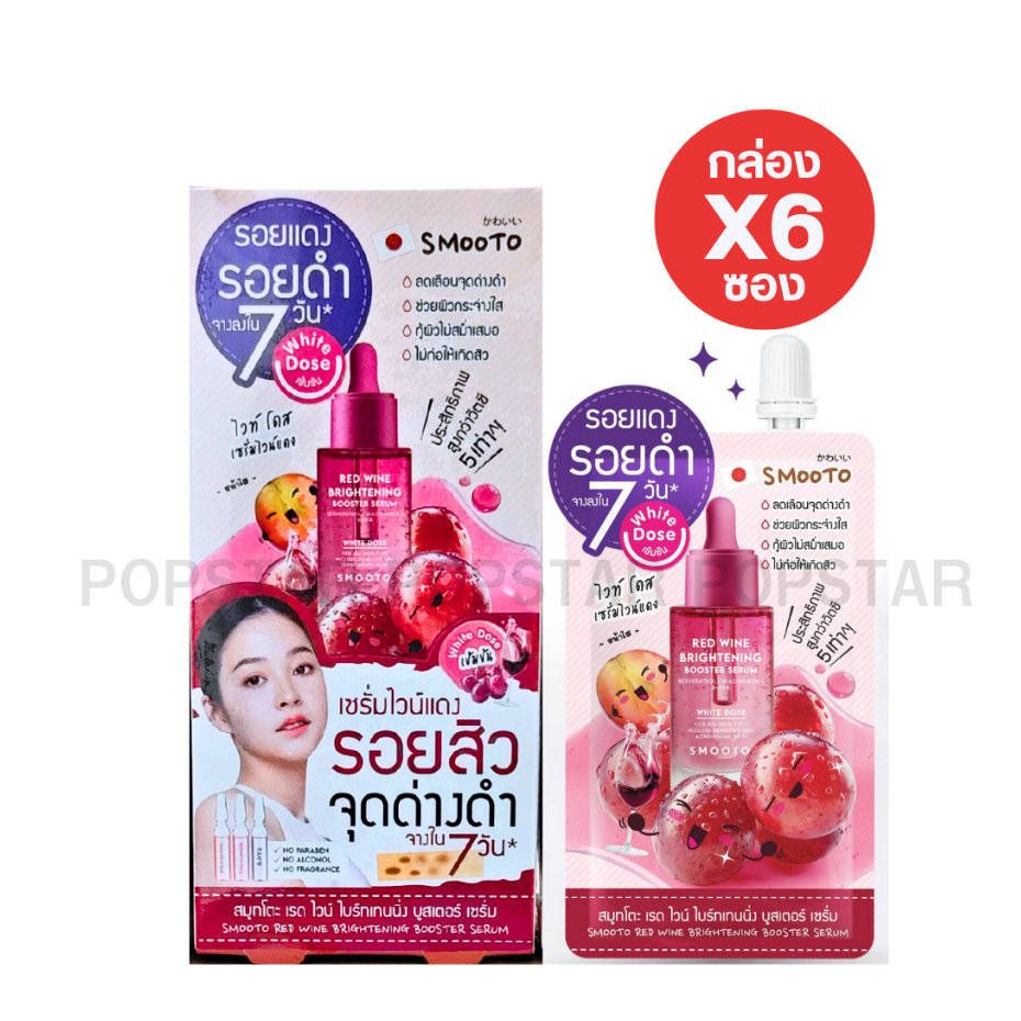 (กล่องx6ซอง)Smooto สมูทโตะ เรด ไวน์ ไบร์ทเทนนิ่ง บูสเตอร์ เซรั่ม เซรั่มไวน์แดง 8กรัม(3994)