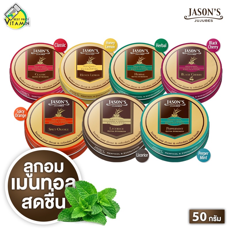 Jason's Jujubes Menthol & Eucalyptol เจสัน จูจุ๊บ เมนทอล & ยูคาลิปตอล [50 g.] ลูกอม เม็ดนุ่ม เย็น ชุ่มคอ ลมหายใจสดชื่น