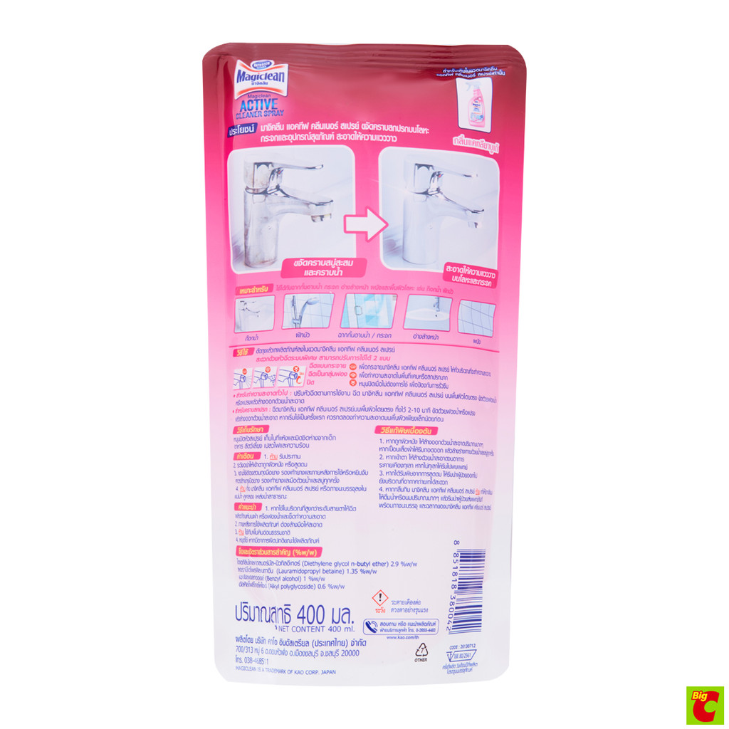 มาจิคลีน น้ำยาทำความสะอาดห้องน้ำ กลิ่นฟรีเซียเทนเดอร์ ถุงเติม 400 มล.
