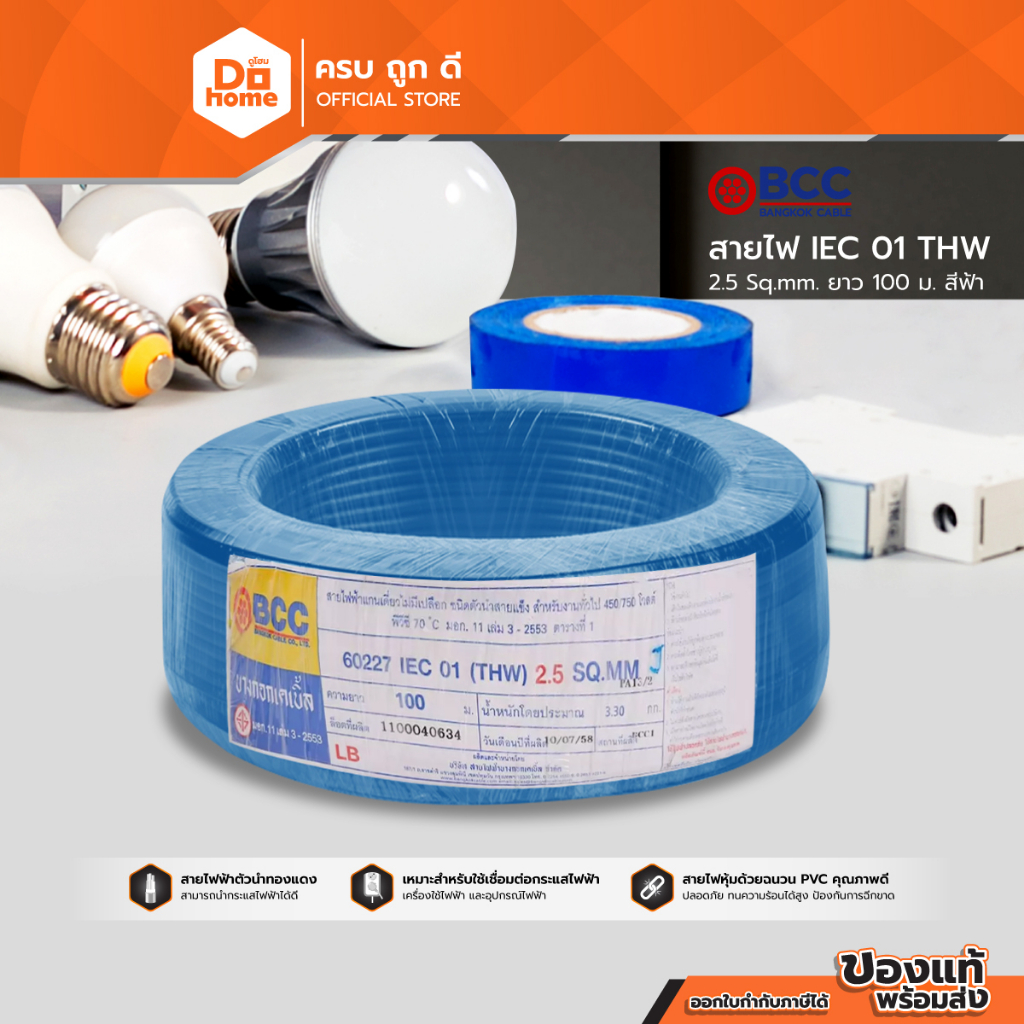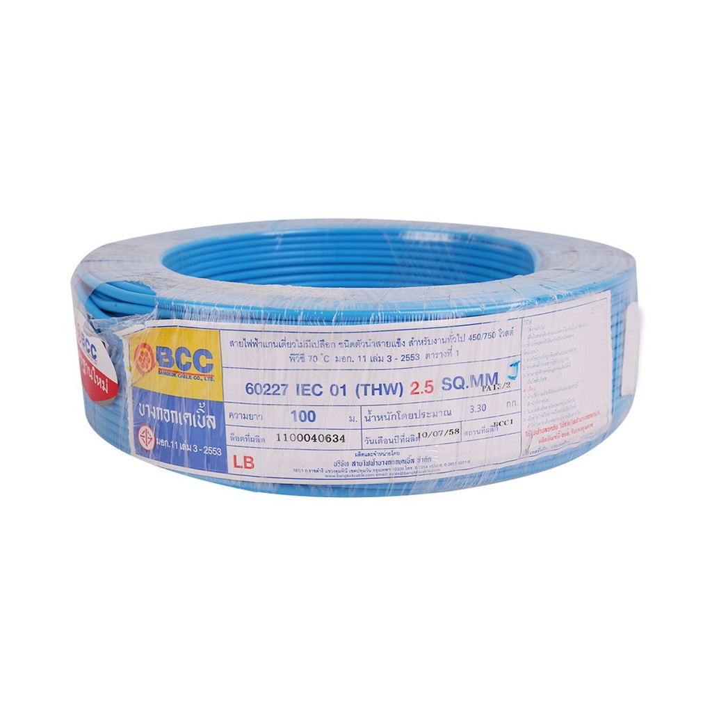 BCC สายไฟ IEC01 (THW) 1x2.5 Sqmm. ยาว 100 เมตร สีฟ้า |ROL|