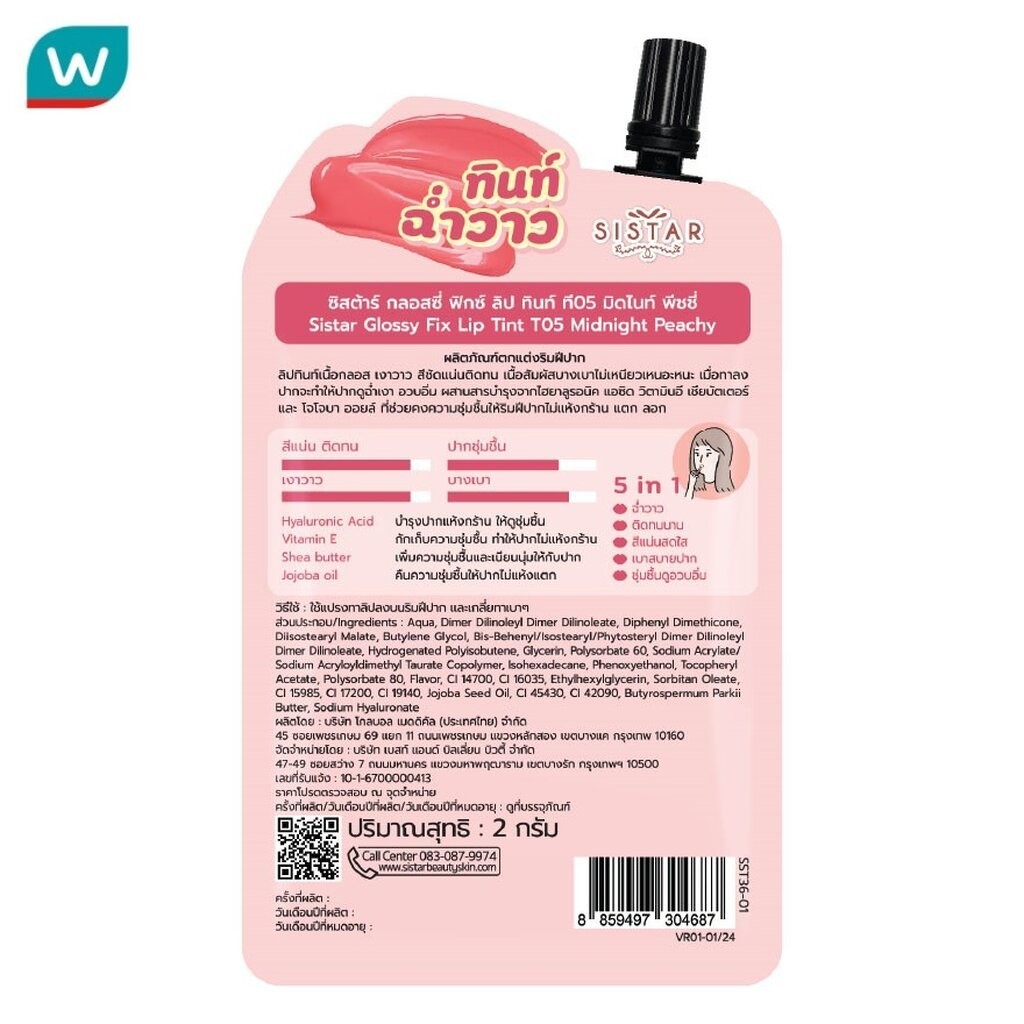 Sistar ซิสต้าร์ กลอสซี่ ฟิกซ์ ลิป ทินท์ 2ก. T05 มิดไนท์ พีชชี่
