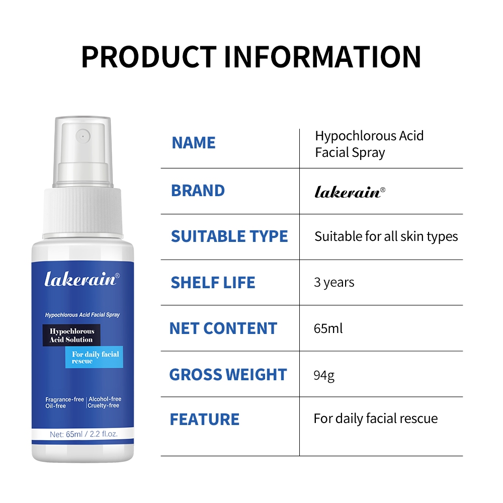 Lakerain 60ml Daily Rescue Facial Spray สําหรับผิวแพ้ง่าย,HypoChlor Spray - Non-Irrting Hypochlorous Acid Spray & Eyelid Cleanser Solution ลบน้ํามันและเศษขยะ