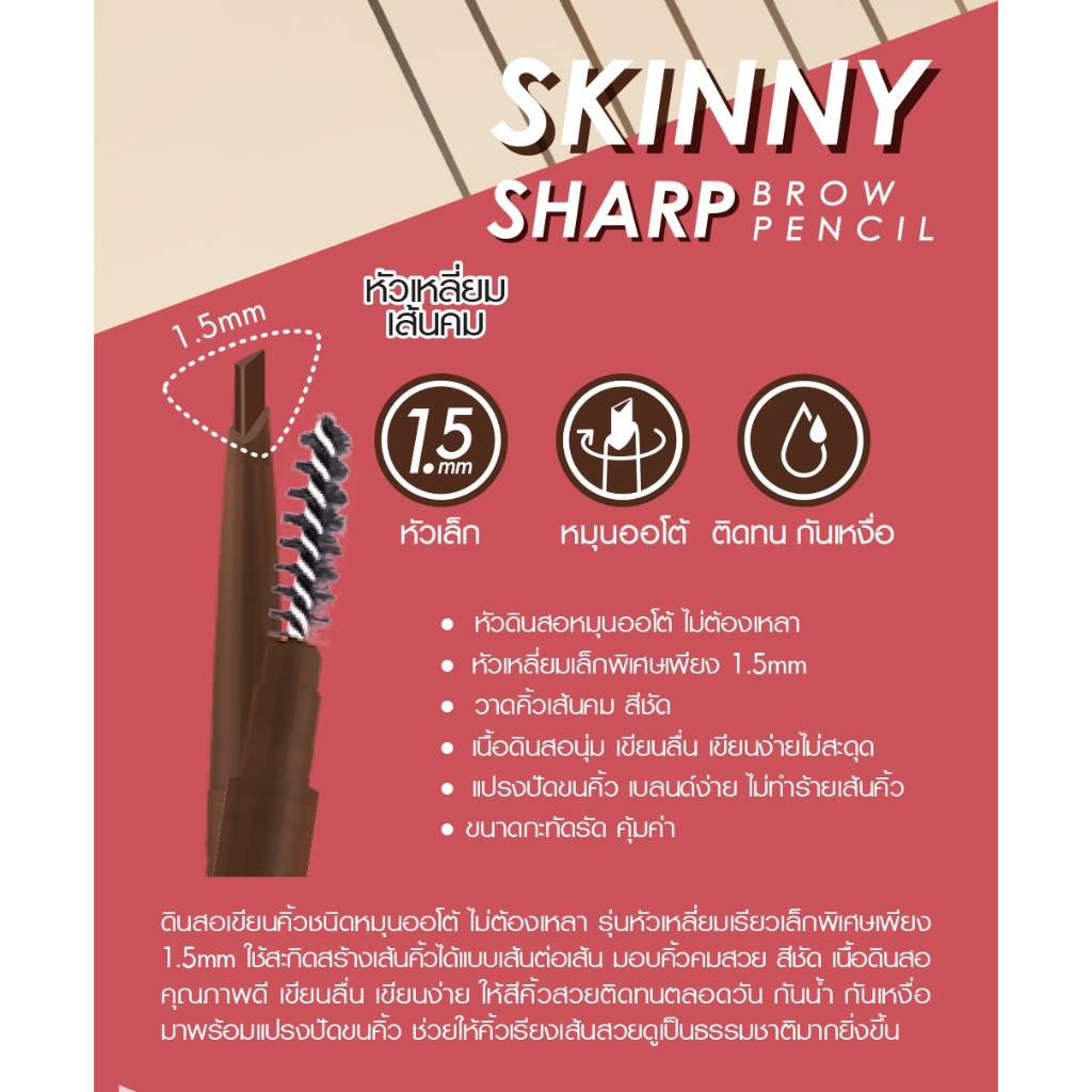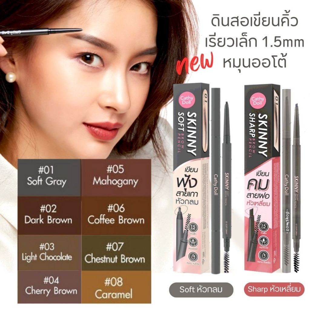 Cathy Doll ดินสอเขียนคิ้ว หัวเล็ก【สกินนี่ชาร์ป&ซอฟท์】Skinny Sharp & Soft Brow Pencil 0.06g.