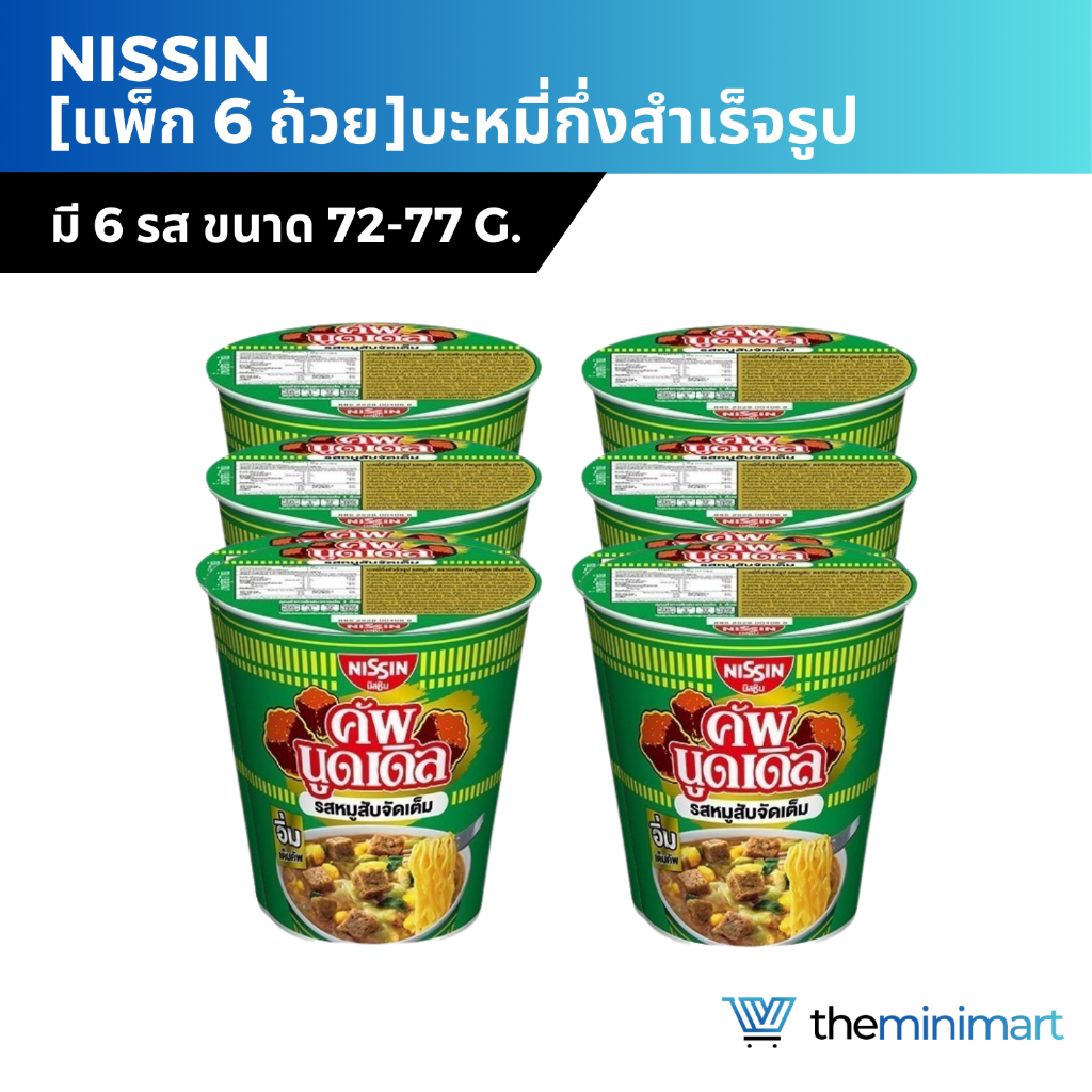[แพ็ก 6 ถ้วย] NISSIN นิสชิน คัพ บะหมี่กึ่งสำเร็จรูป แบบถ้วย 72g-77gx6 แพ็ก 6 ถ้วย