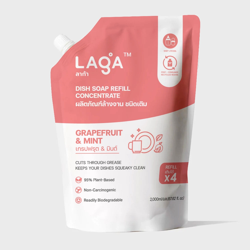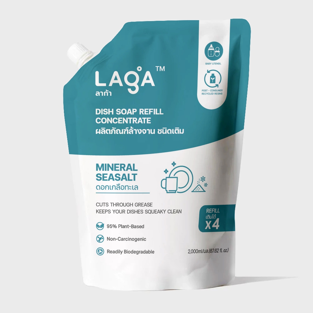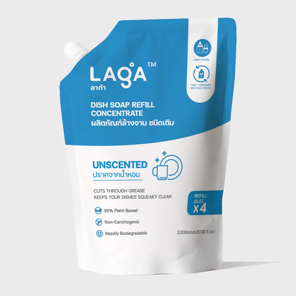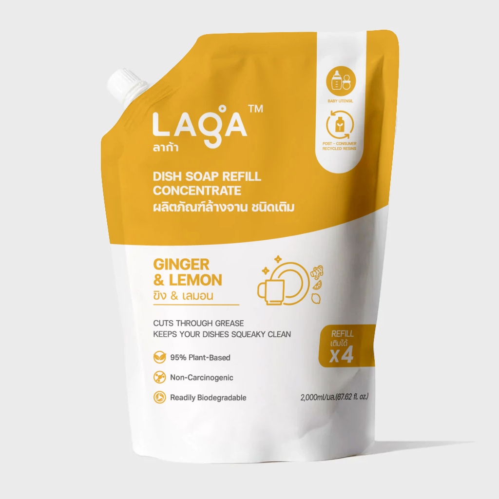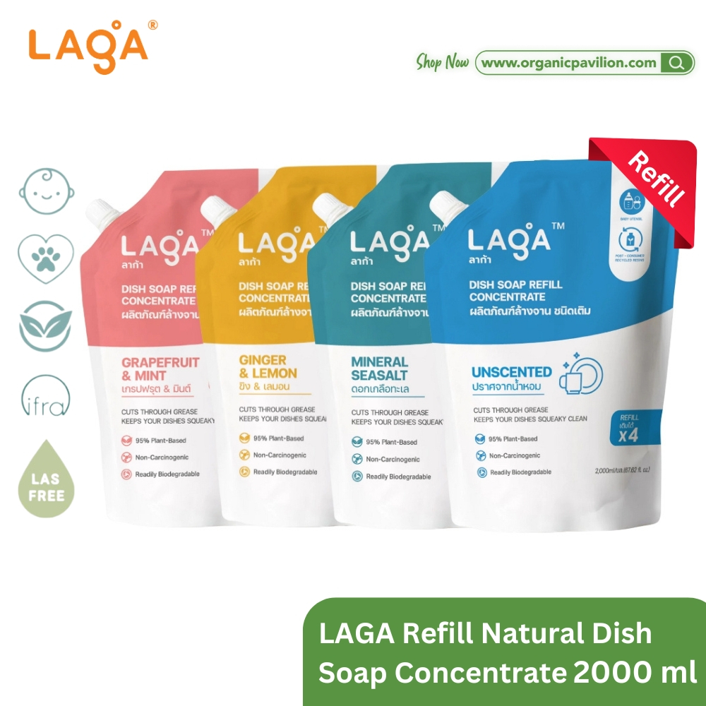 LAGA ลาก้า ผลิตภัณฑ์น้ำยาล้างจานแบบถุงเติม สูตรธรรมชาติ ชนิดเข้มข้น Refill Natural Dish Soap Concentrate (2000ml)