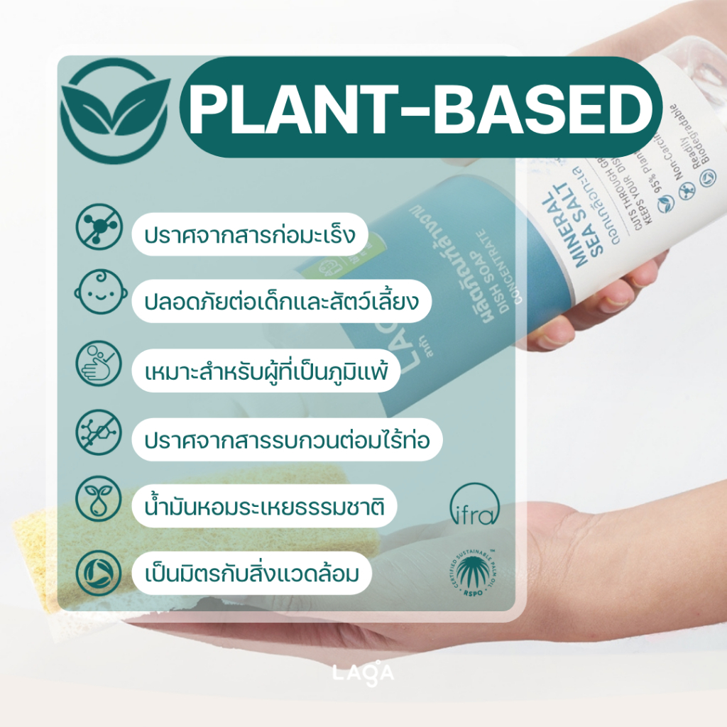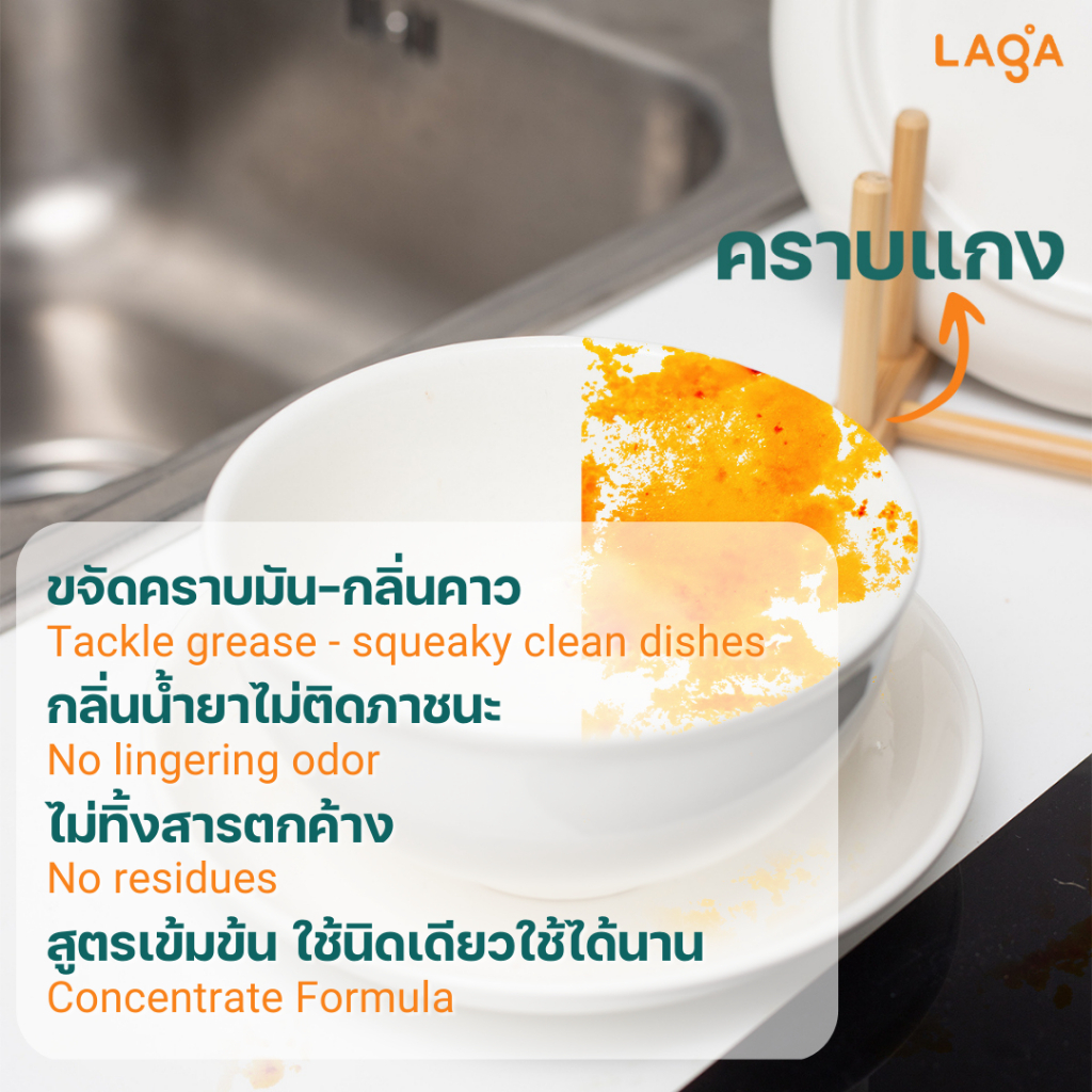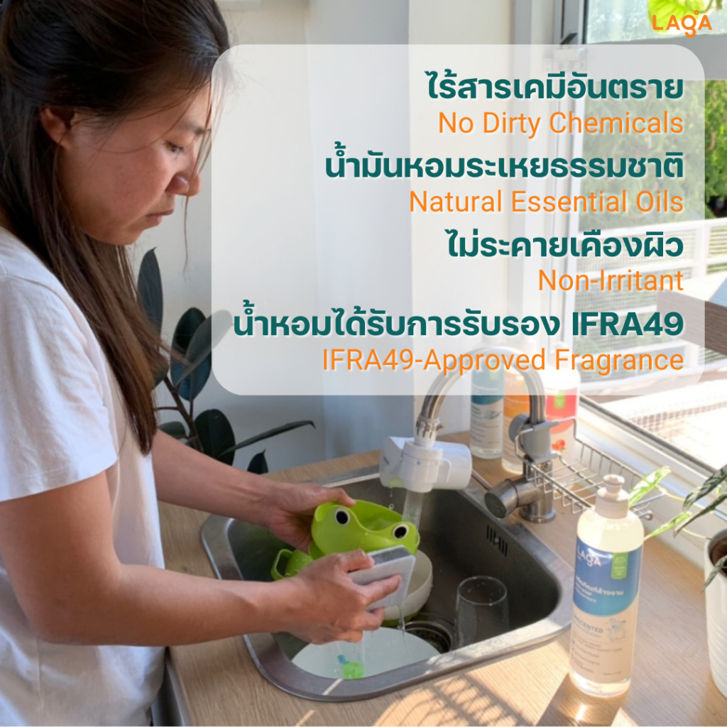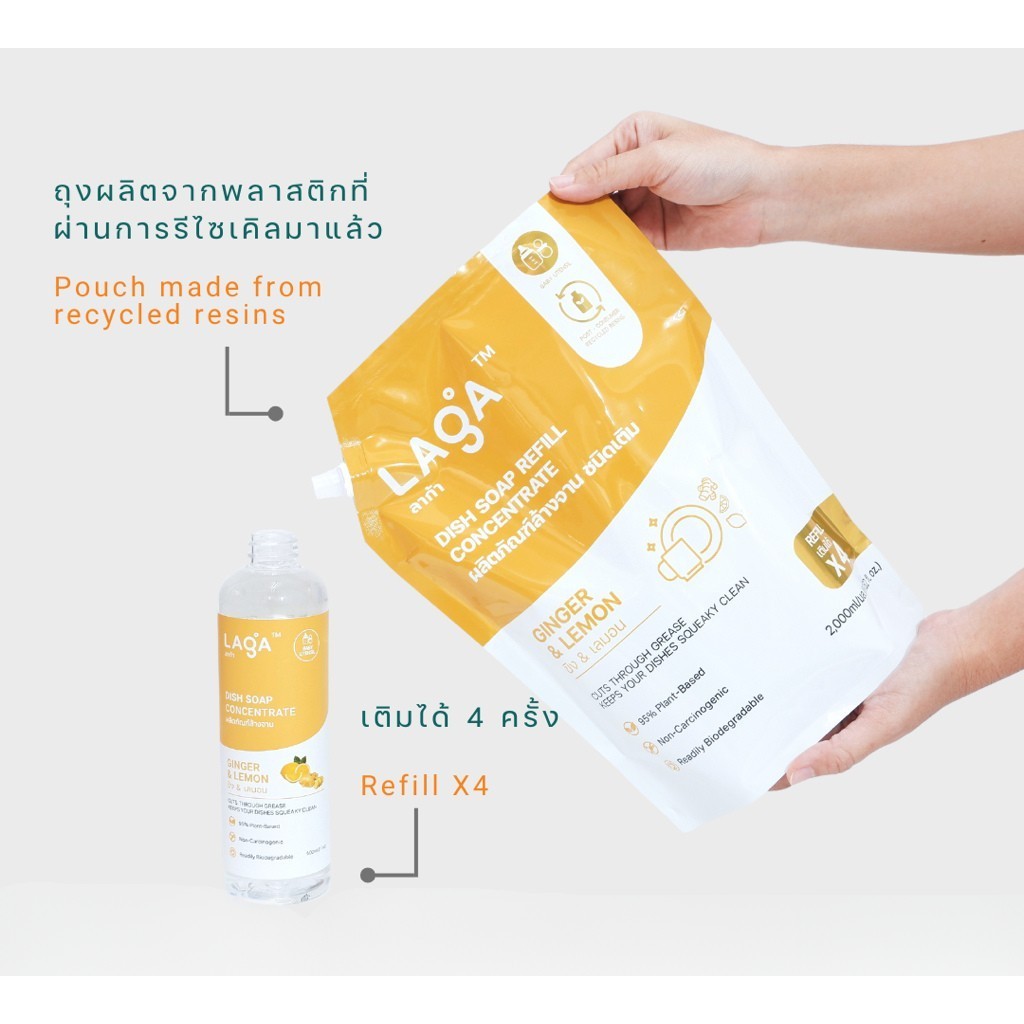 LAGA ลาก้า ผลิตภัณฑ์น้ำยาล้างจานแบบถุงเติม สูตรธรรมชาติ ชนิดเข้มข้น Refill Natural Dish Soap Concentrate (2000ml)