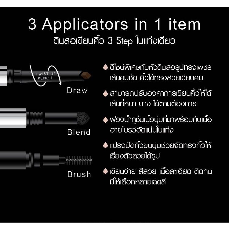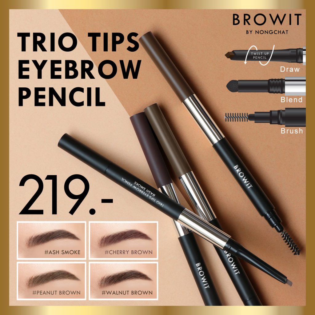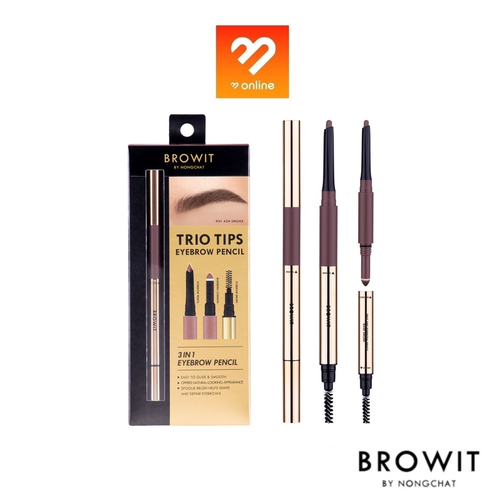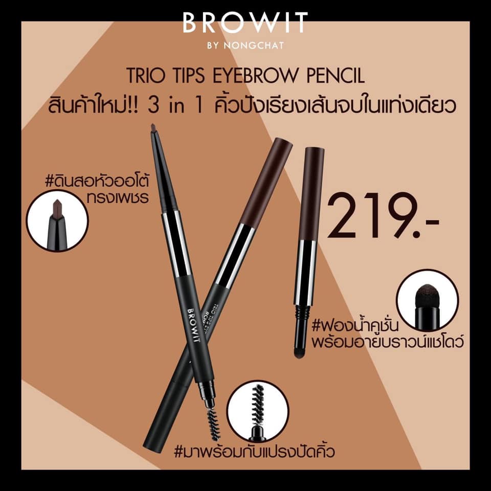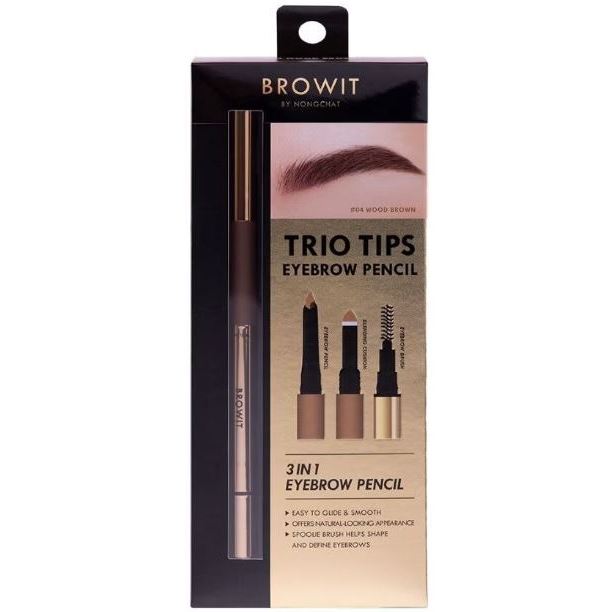 BROWIT TRIO TIPS EYEBROW PENCIL 3in1 บราวอิท บาย น้องฉัตร ทรีโอทิปส์อายบราวเพนซิล ดินสอเขียนคิ้ว 3 step ในแท่งเดียว
