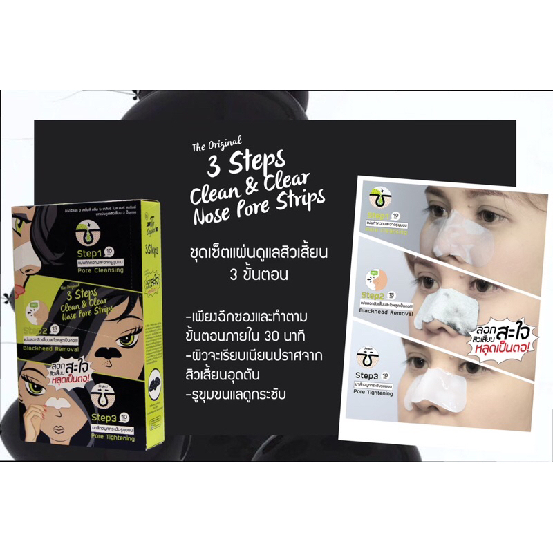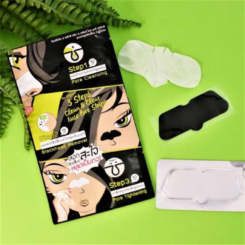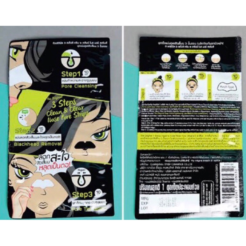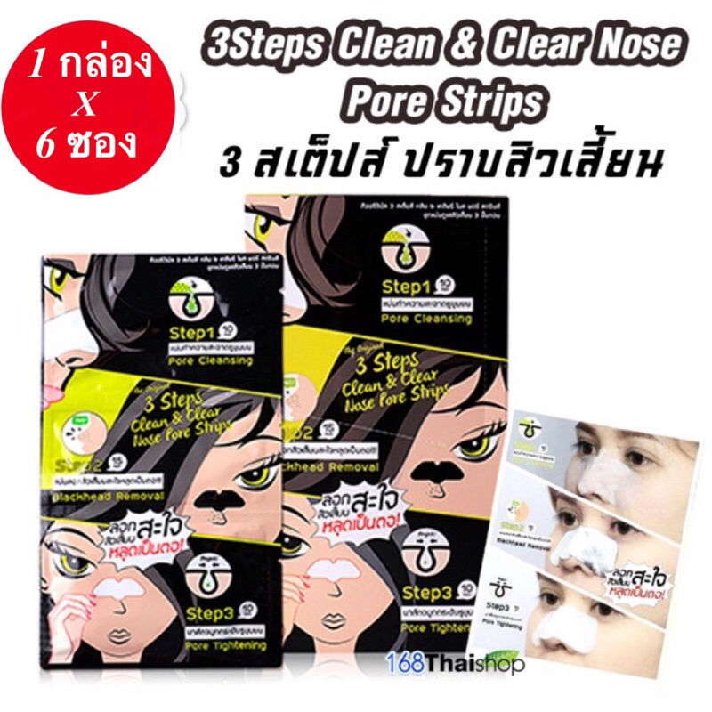 1 กล่อง 6 ซอง The Original 3 Step Clean&Clear Nose Pore Strips ดิออริจินัล 3 สเต๊ปส์ ชุดแผ่นดูแลสิวเสี้ยน3ขั้นตอน