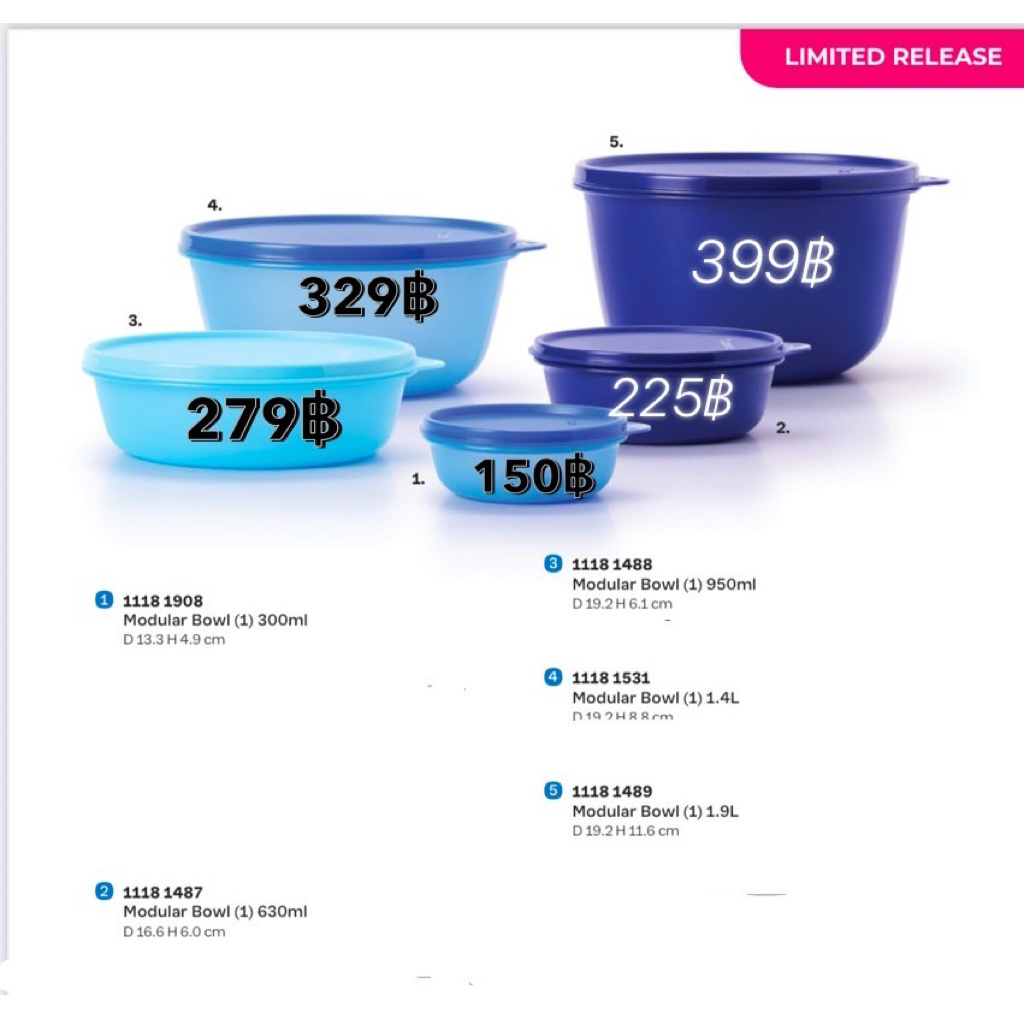 Tupperware รุ่น Modular Bowl ฝาปิดแน่นสนิท ลมไม่เข้า ถนอมอาหารได้นาน