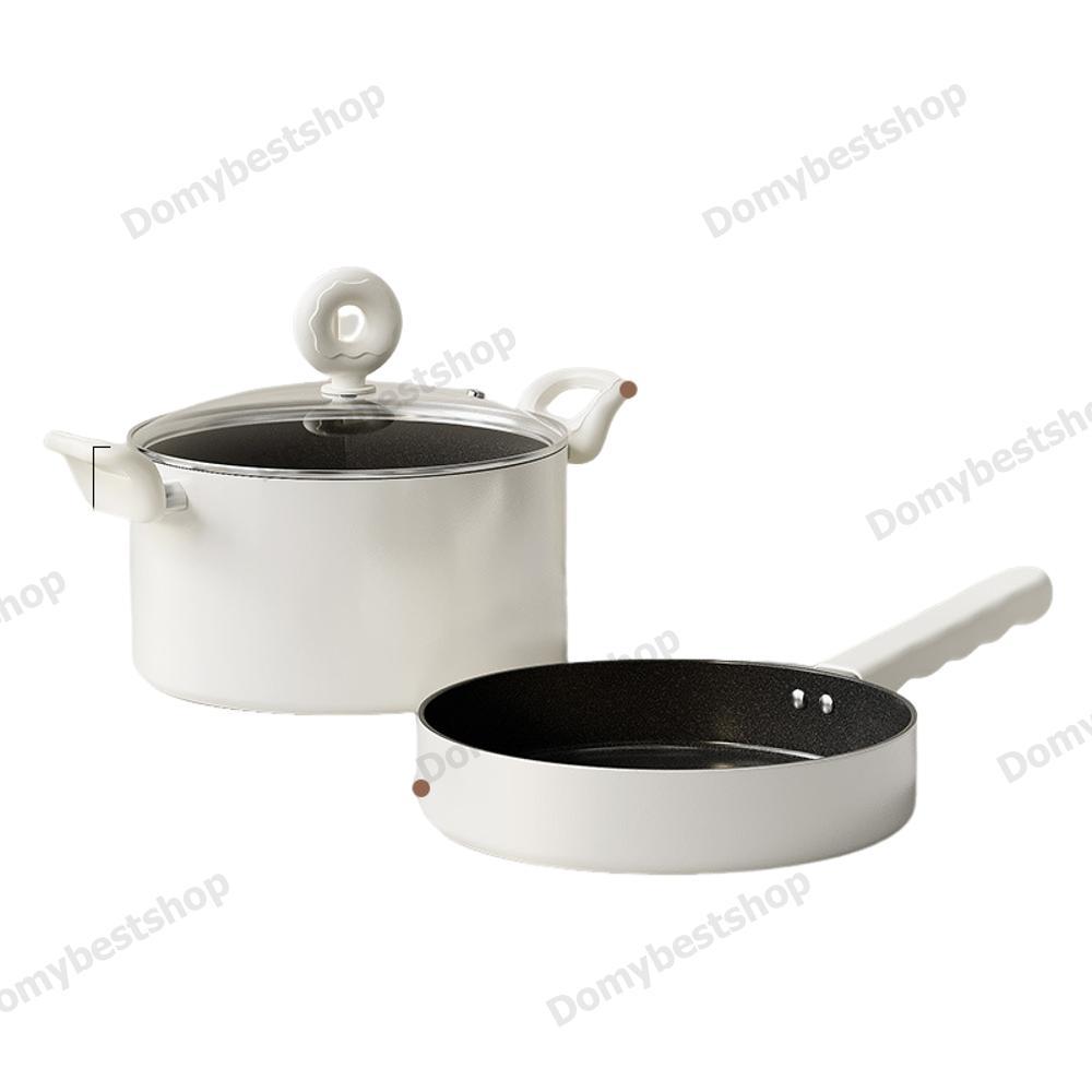 ปลาค็อด หม้อซุปไม่เคลือบชุดกระทะซอสสีขาวทําความสะอาดง่ายชุดกระทะกระทะกระทะอเนกประสงค์เข้ากันได้กับเตาตั ้งพื้นทั้งหมด